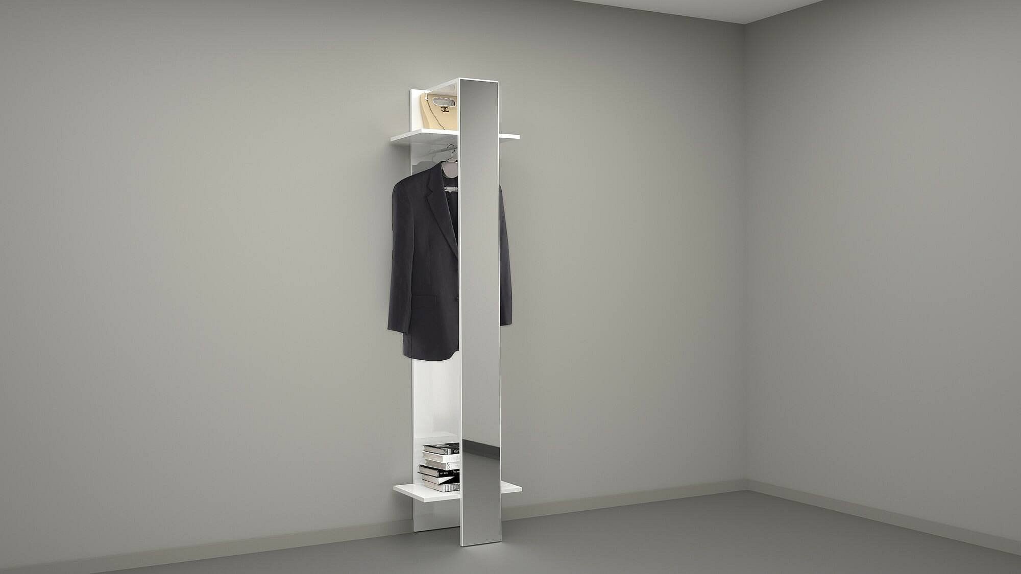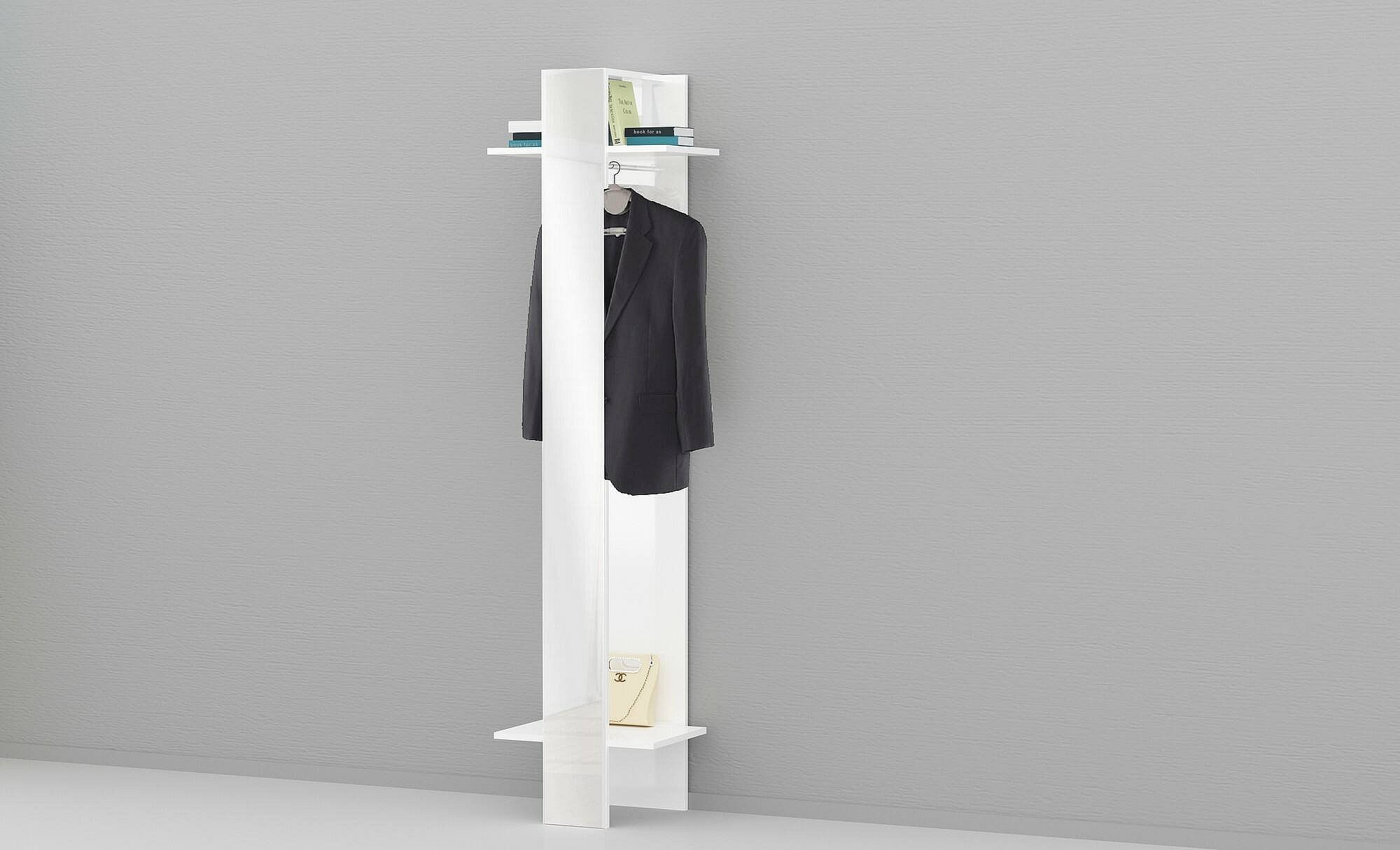 Armário de entrada Dcrociat, Armário mulFunção, Cabide de parede com espelho, 50x35h190 cm, Branco