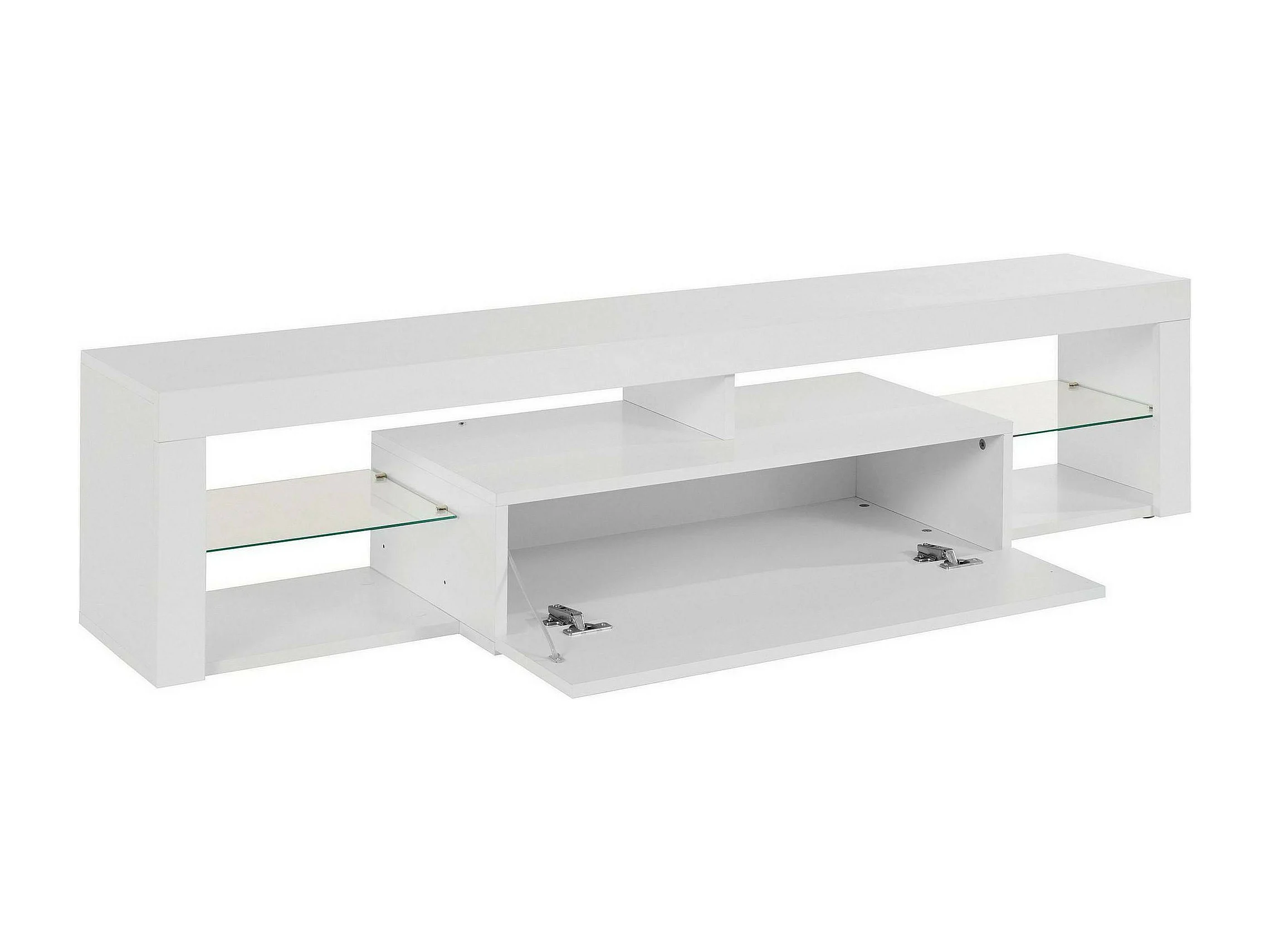 Armário de suporte de TV Dcompagno, Suporte de TV, Aparador baixo para sala de estar com 1 porta, 100% Made in Italy, 160x40h35 cm, Branco brilhante