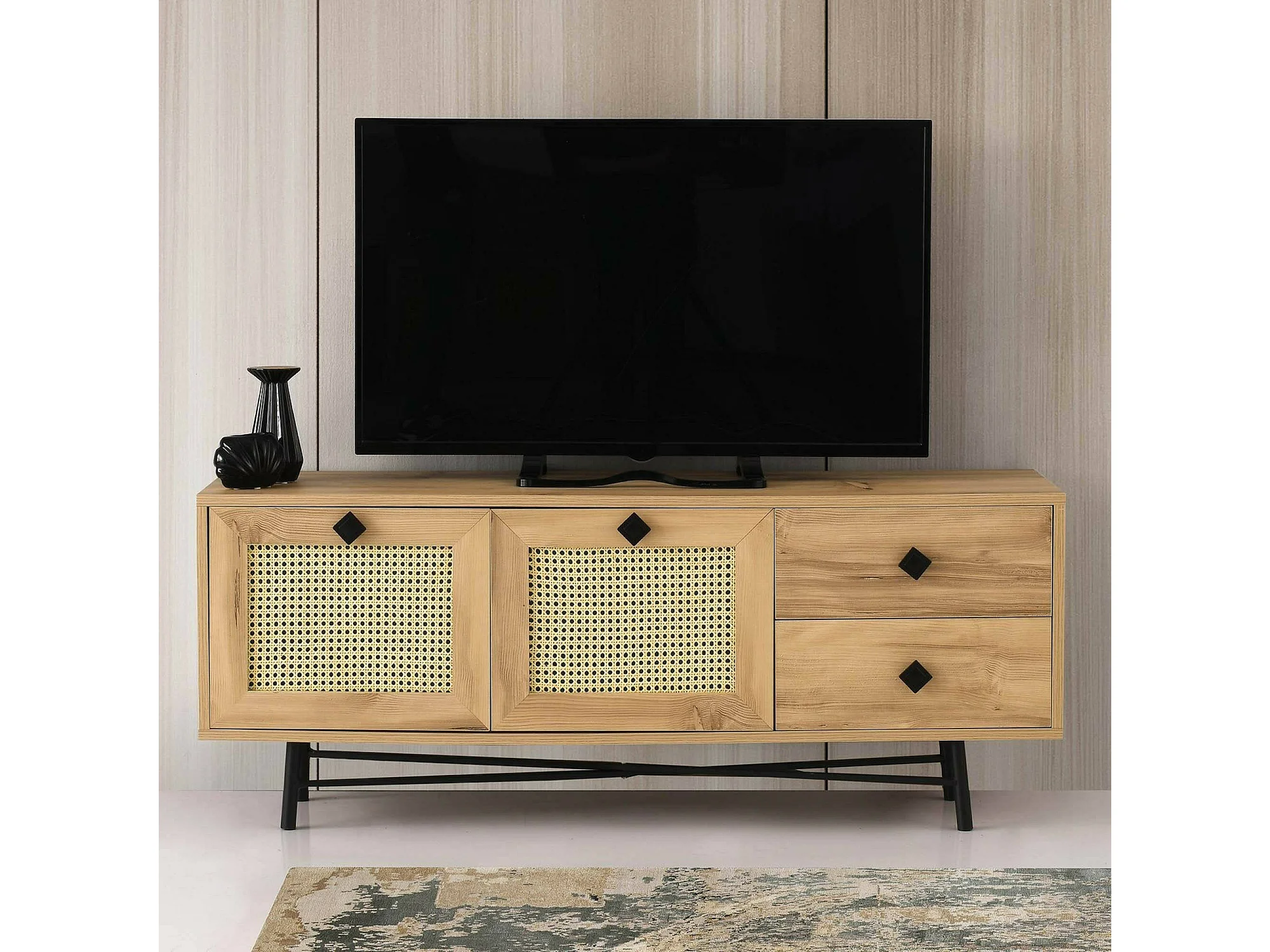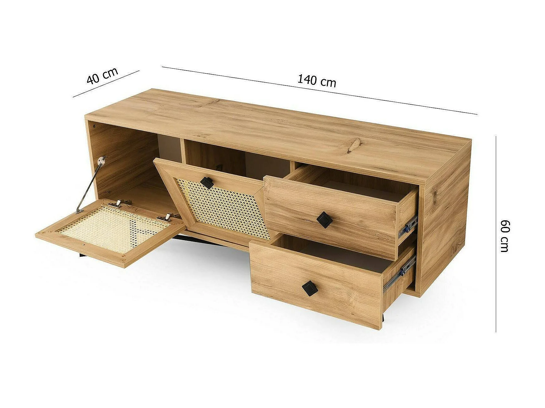 Armário de suporte de TV Dmarchin, Aparador de sala, Armário de TV baixo, Base de parede equipada, 140x40h60 cm, Carvalho e Preto