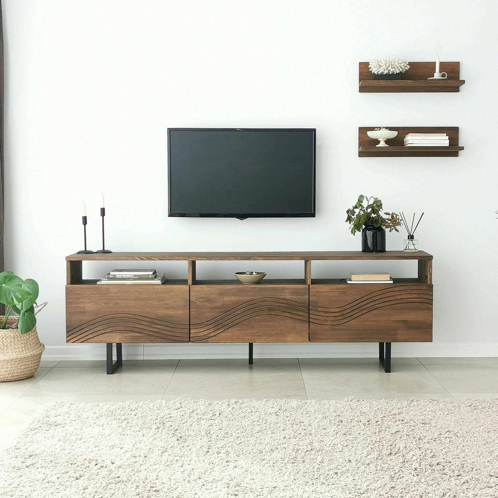 Armário de TV Dflabore, CrEdência de sala de estar, Armário baixo para TV, Base de parede equipada, 170x30h40 cm, Noz
