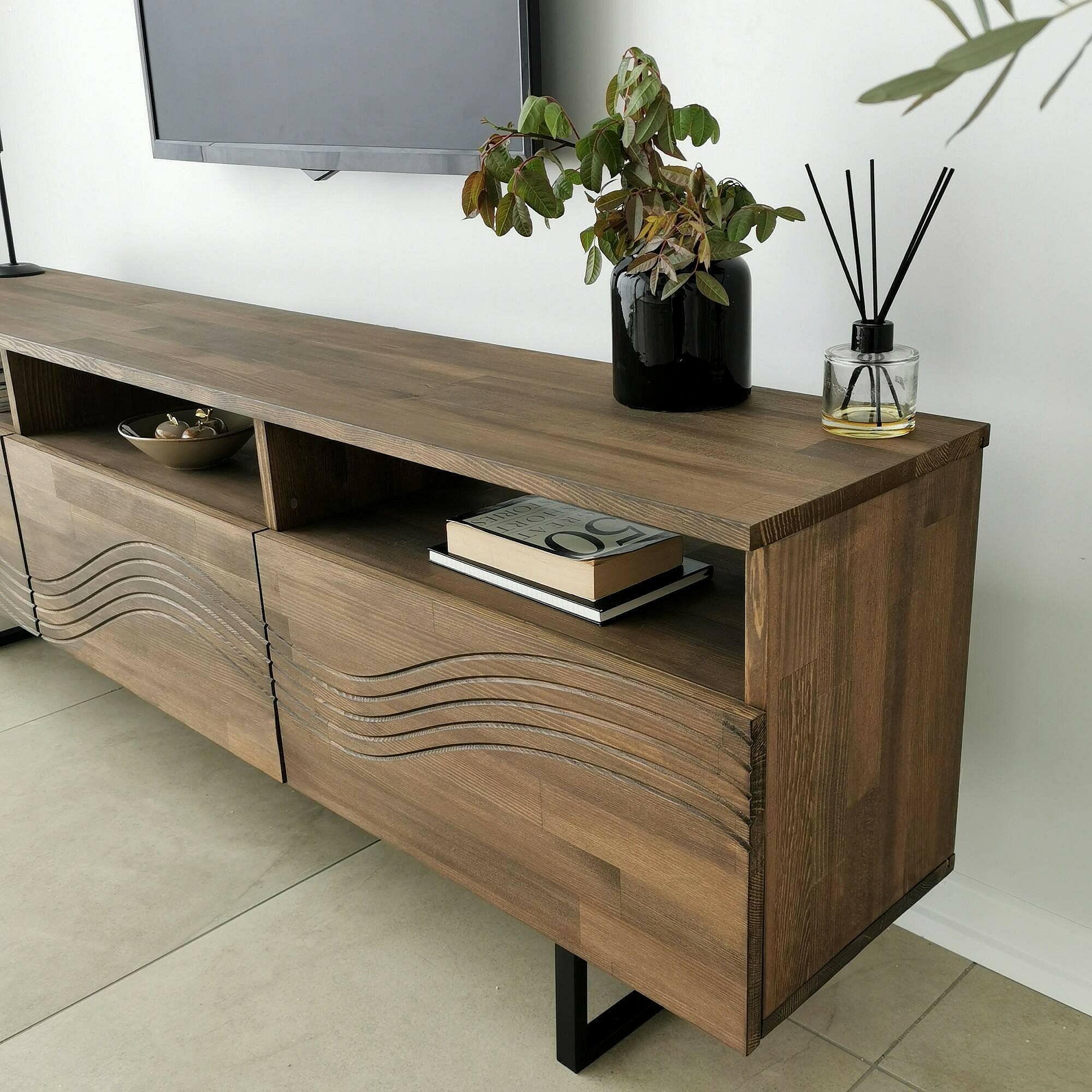 Móvel de TV Buffet de TV design prático madeira de mangueira maciça 2502022