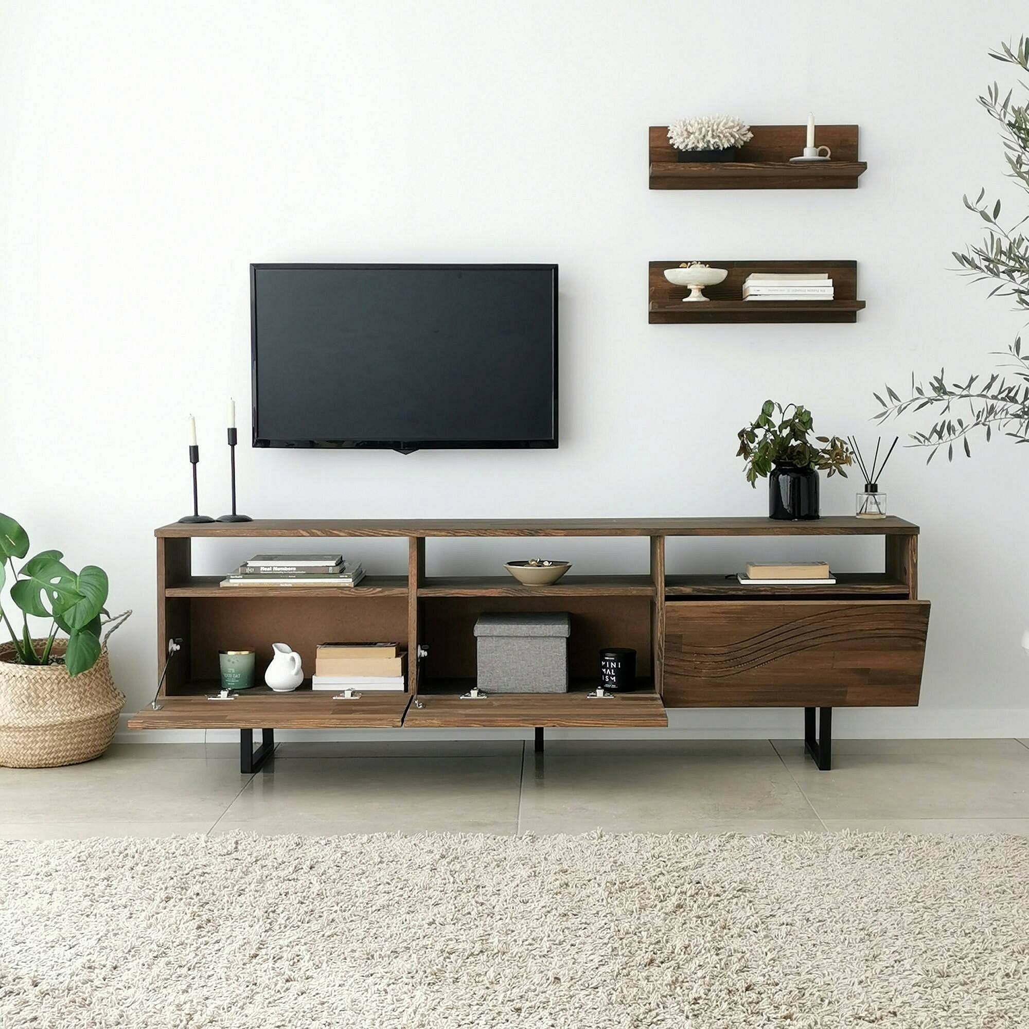Armário de TV Dpatrici, Aparador de sala, Armário de TV baixo, Base de parede equipada, 170x30h40 cm, Nogueira
