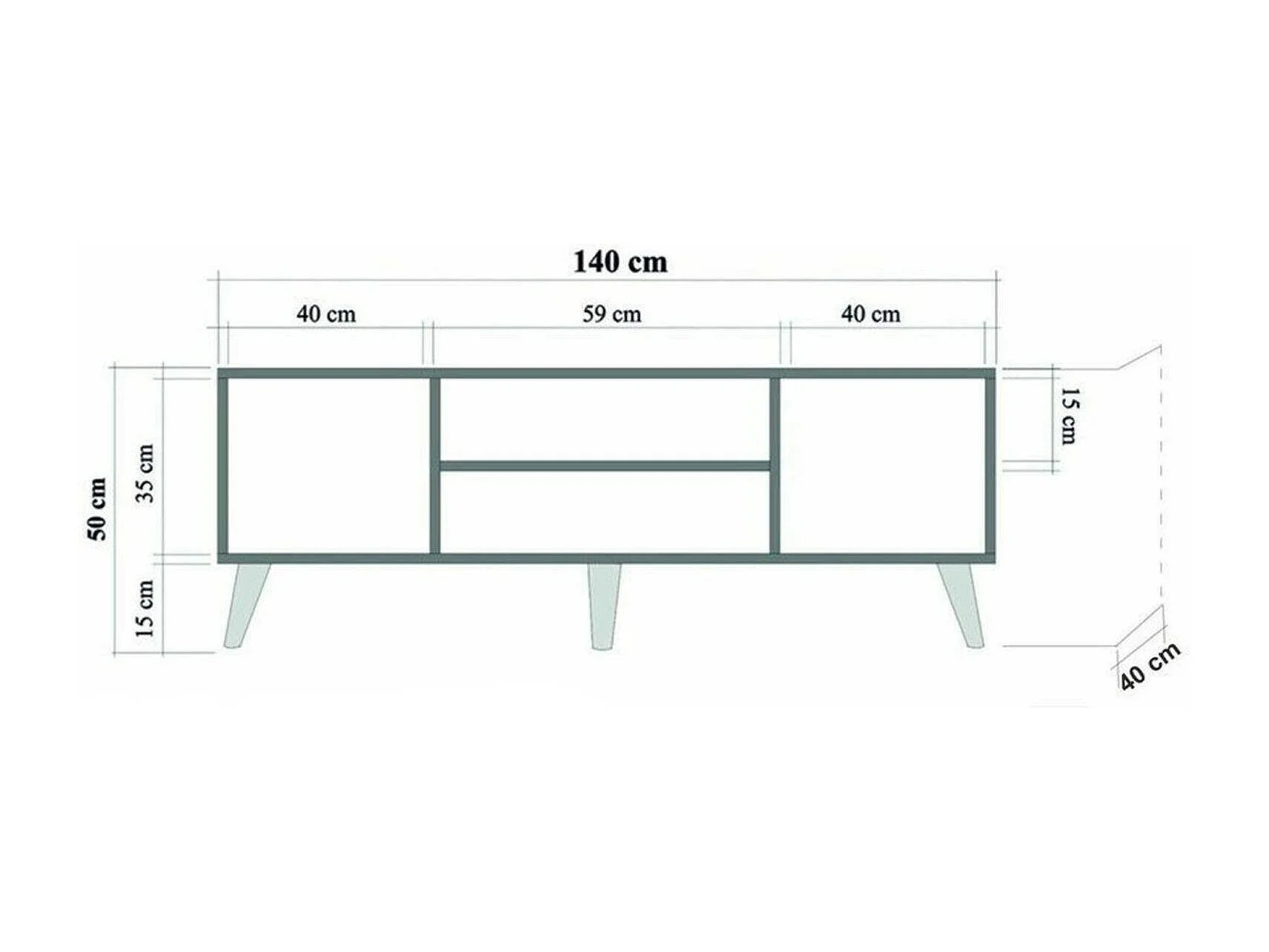 Armário de TV Dfantacc, Aparador de sala, Armário de TV baixo, Base de parede equipada, 140x40h50 cm, Carvalho