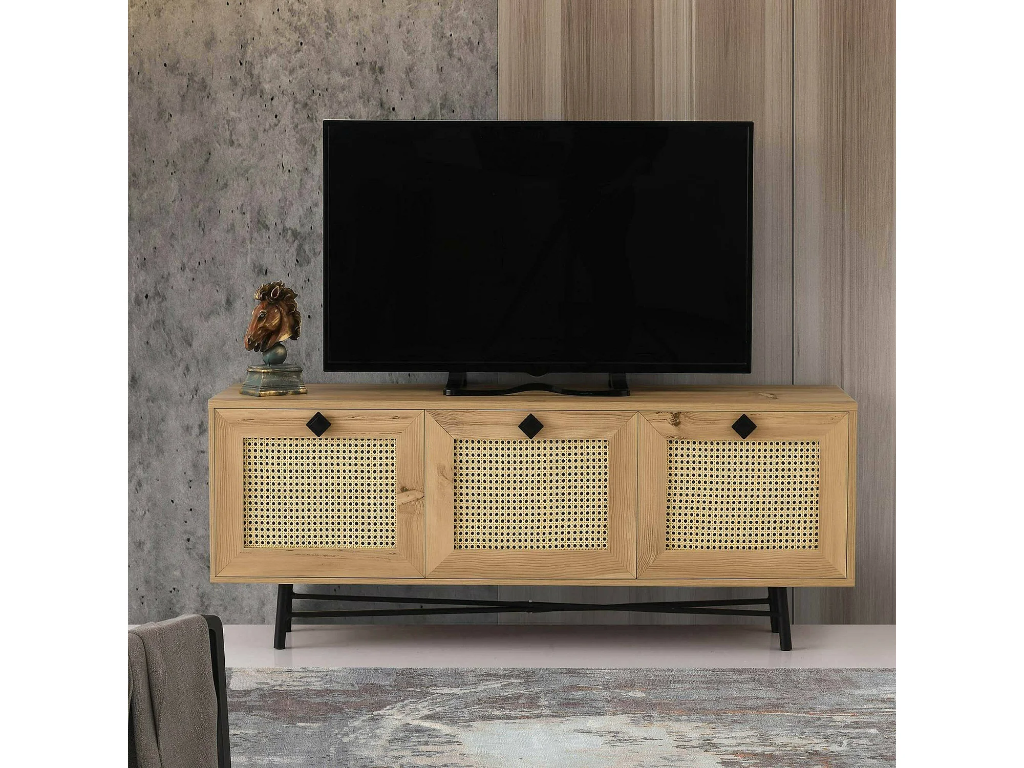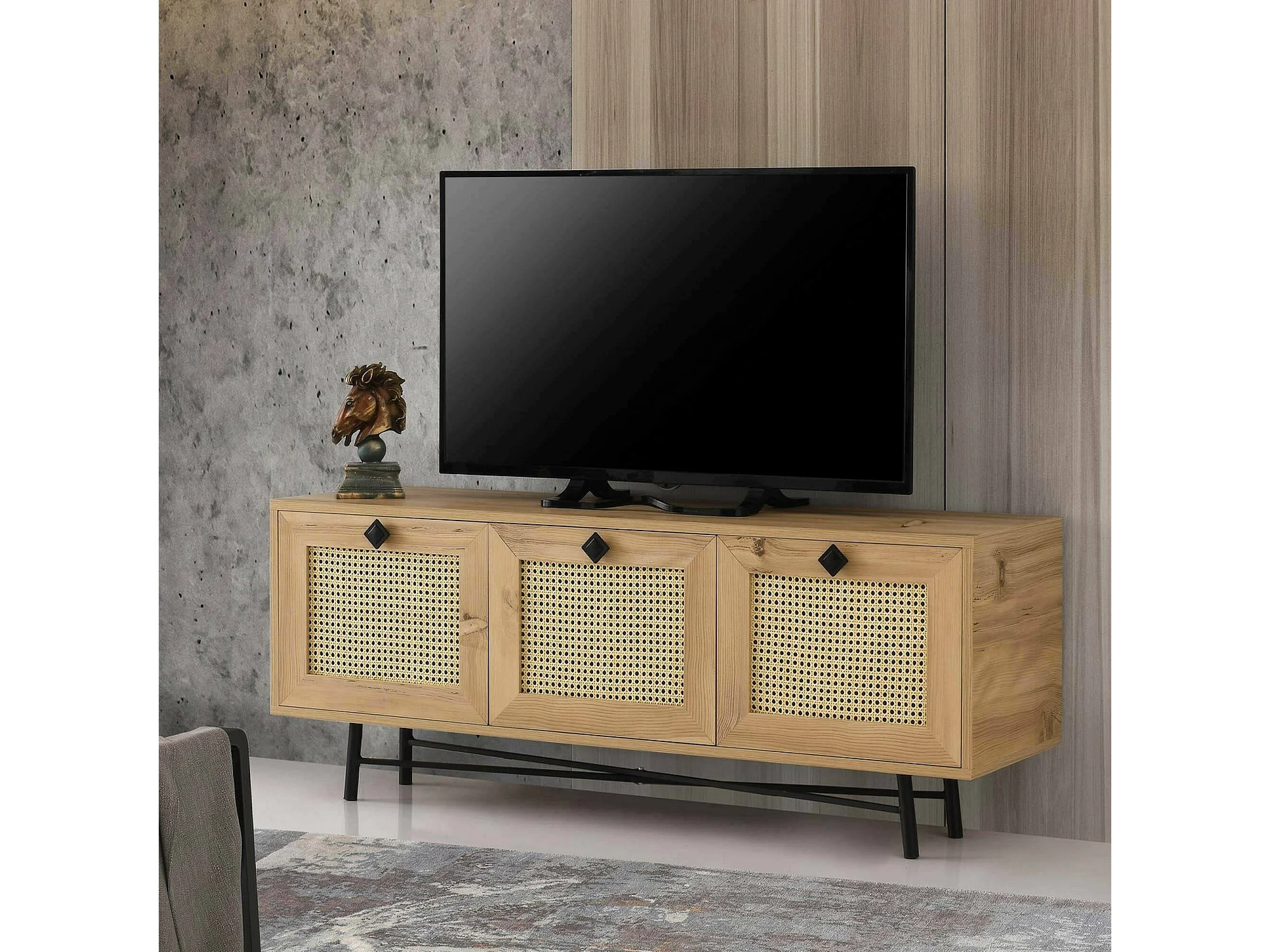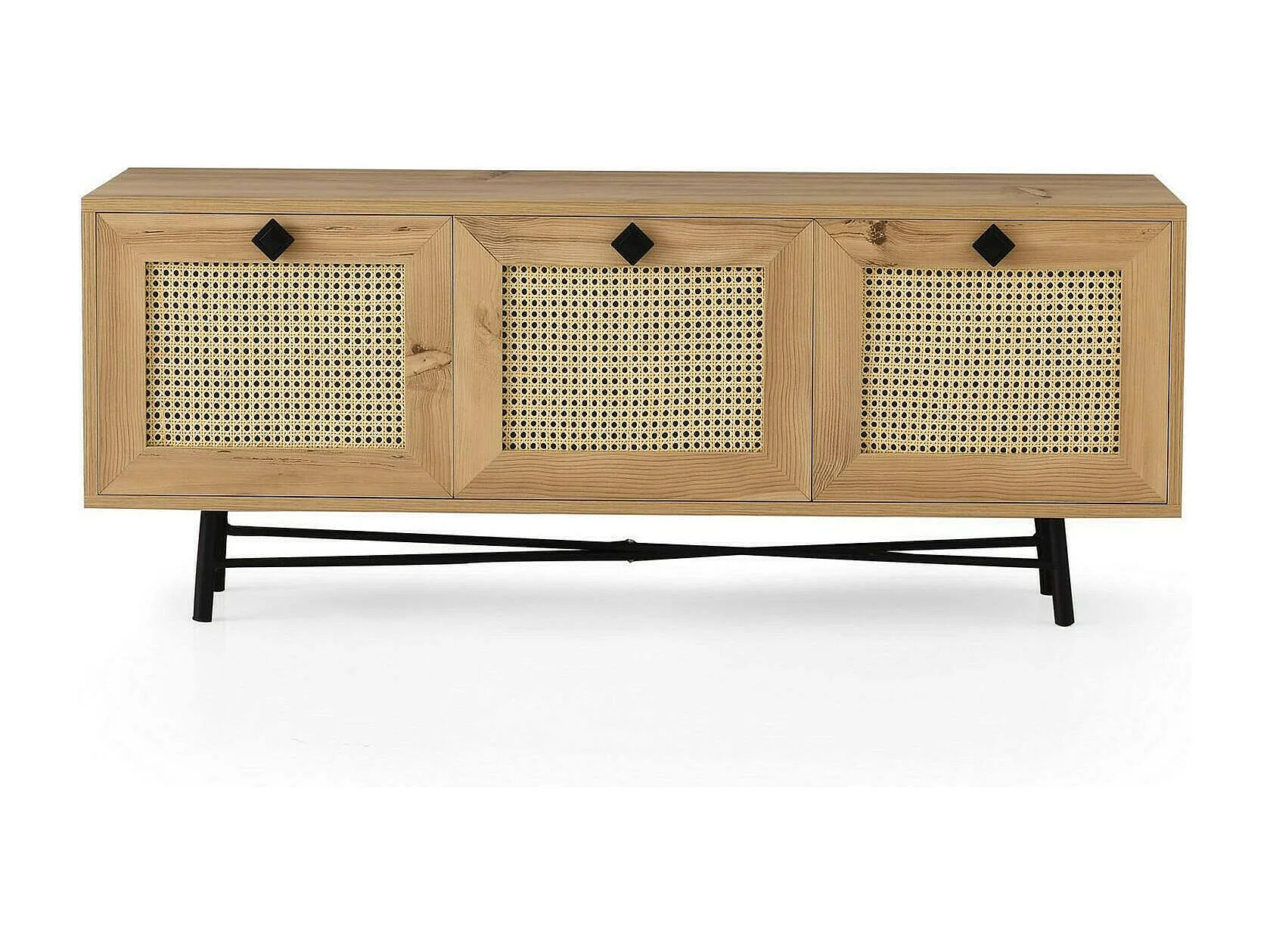 Armário de TV Dpasinat, Aparador de sala, Armário de TV baixo, Base de parede attrEzzata, 140x40h60 cm, Carvalho e Preto
