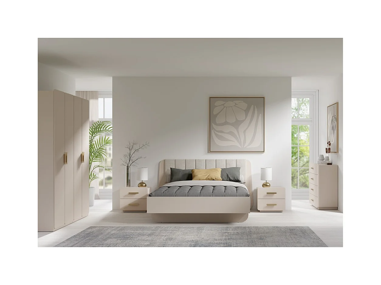 Armário KALISTA 200 cm COR areia – 4 portas, 2 espelhos, 3 gavetas, puxadores dourados