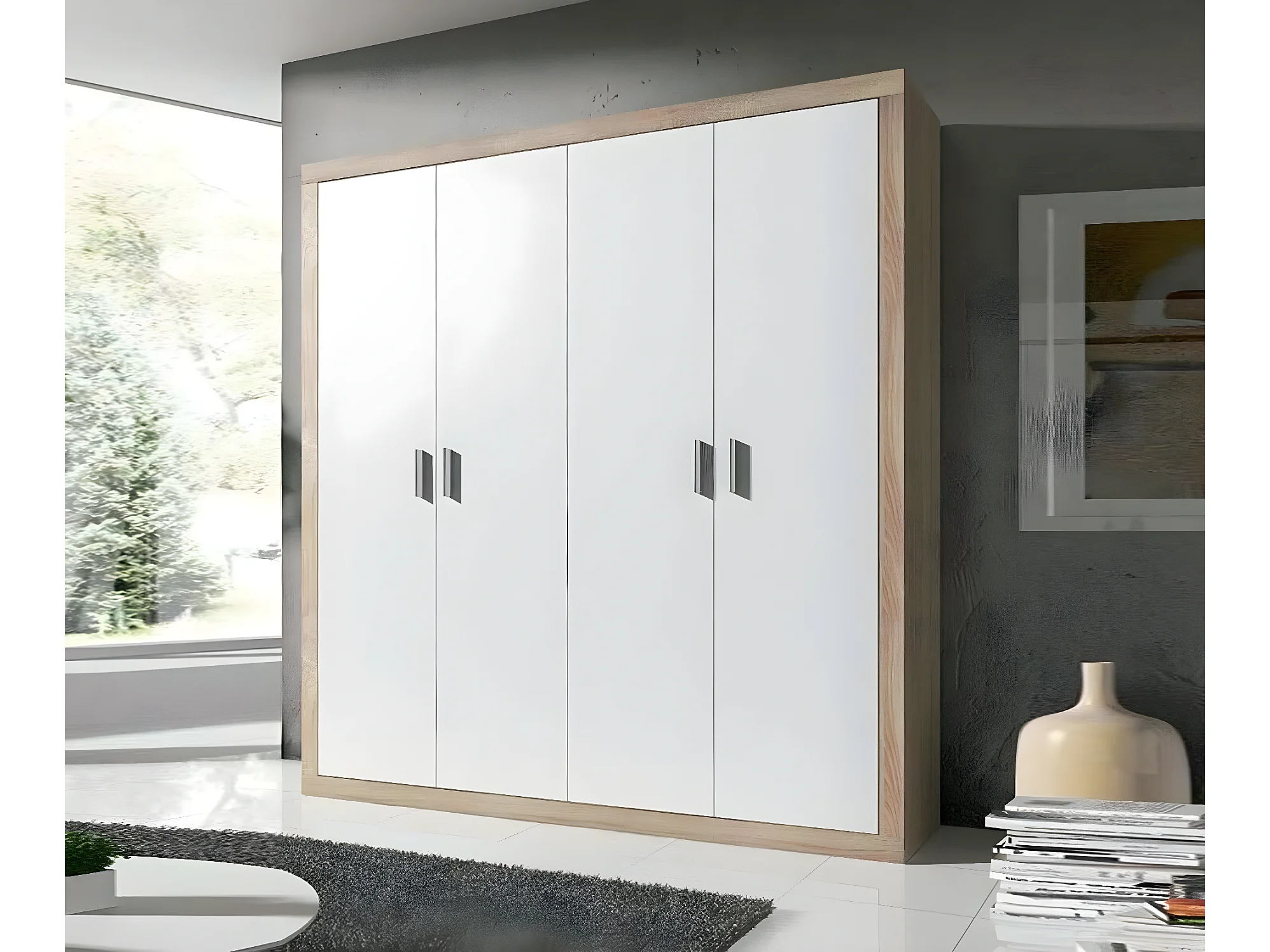 Roupeiro Lara 4 Portas Lara, Carvalho e Branco 210x196x49cm