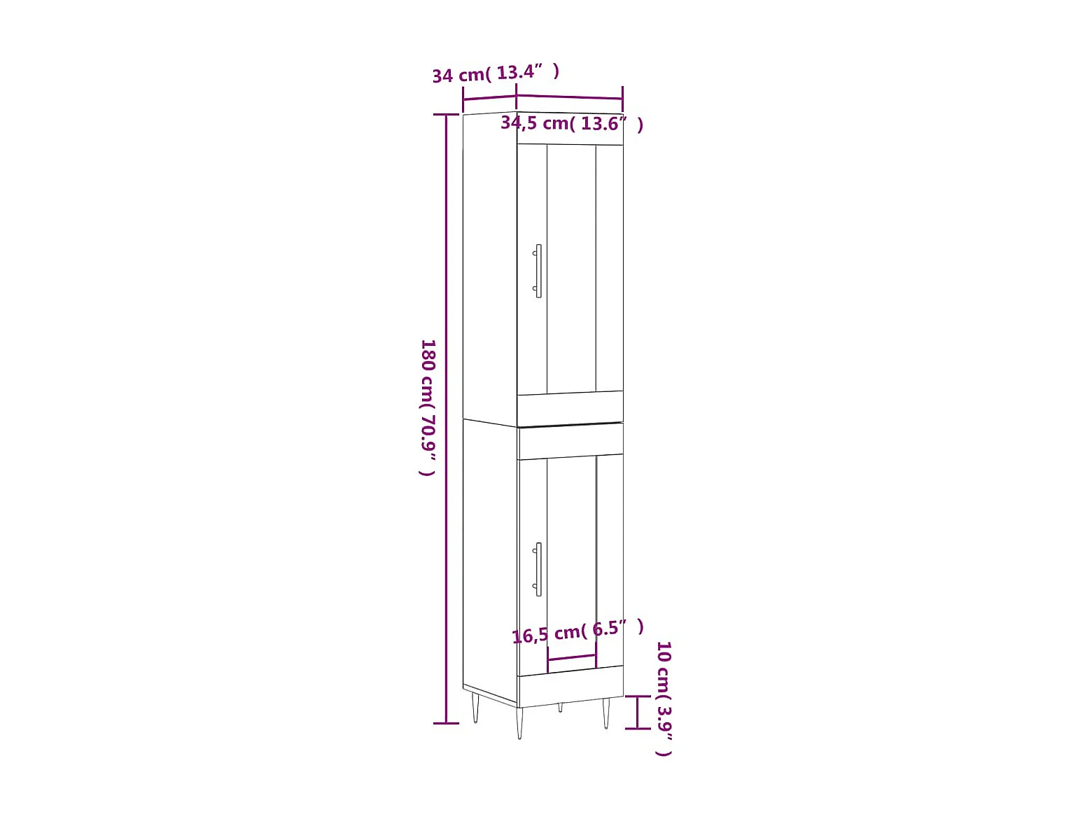 Armário alto 34,5x34x180cm madeira processada carvalho fumado