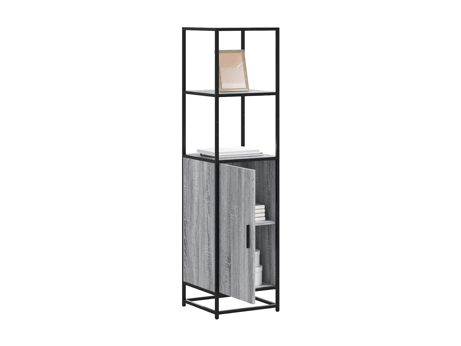 Armário alto 35,5x35x139 cm madeira e metal cinza sonoma
