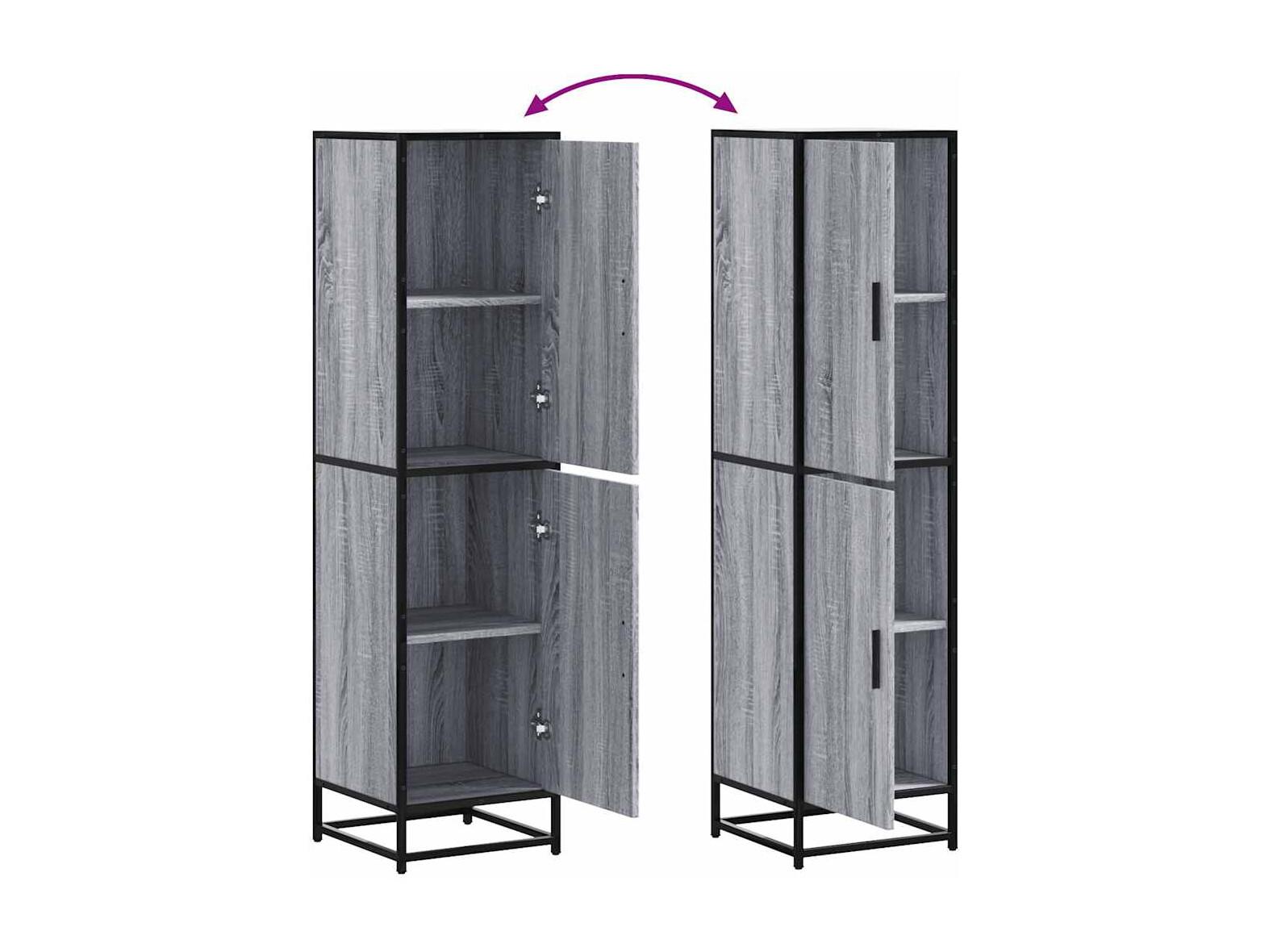 Armário alto 35,5x35x139 cm madeira e metal cinza sonoma