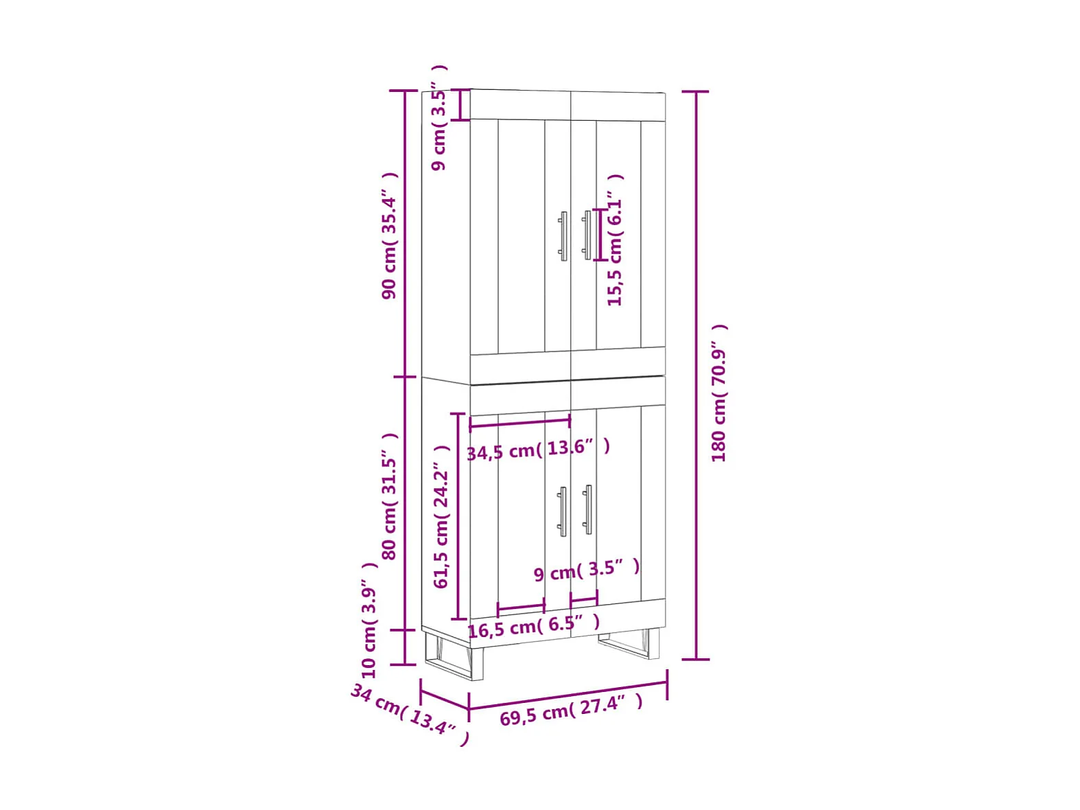Armário alto 69,5x34x180 cm derivados de madeira sonoma cinza