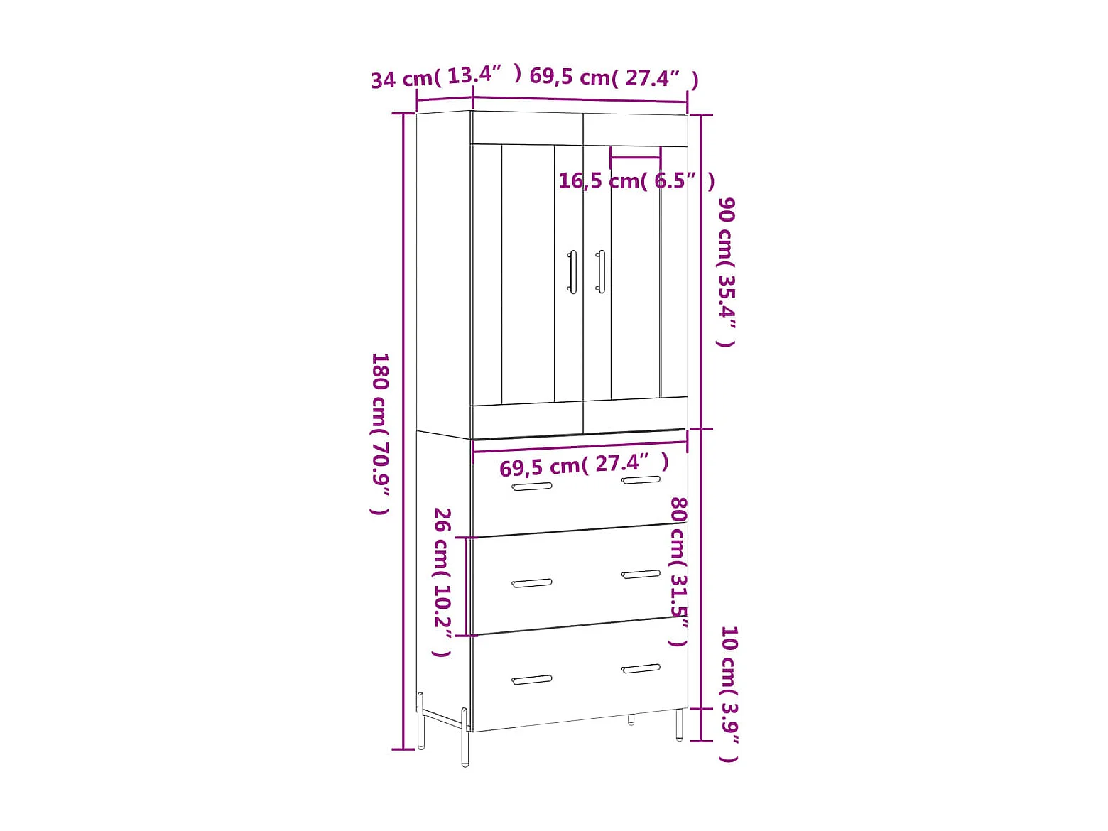 Armário alto 69,5x34x180 cm madeira processada carvalho fumado