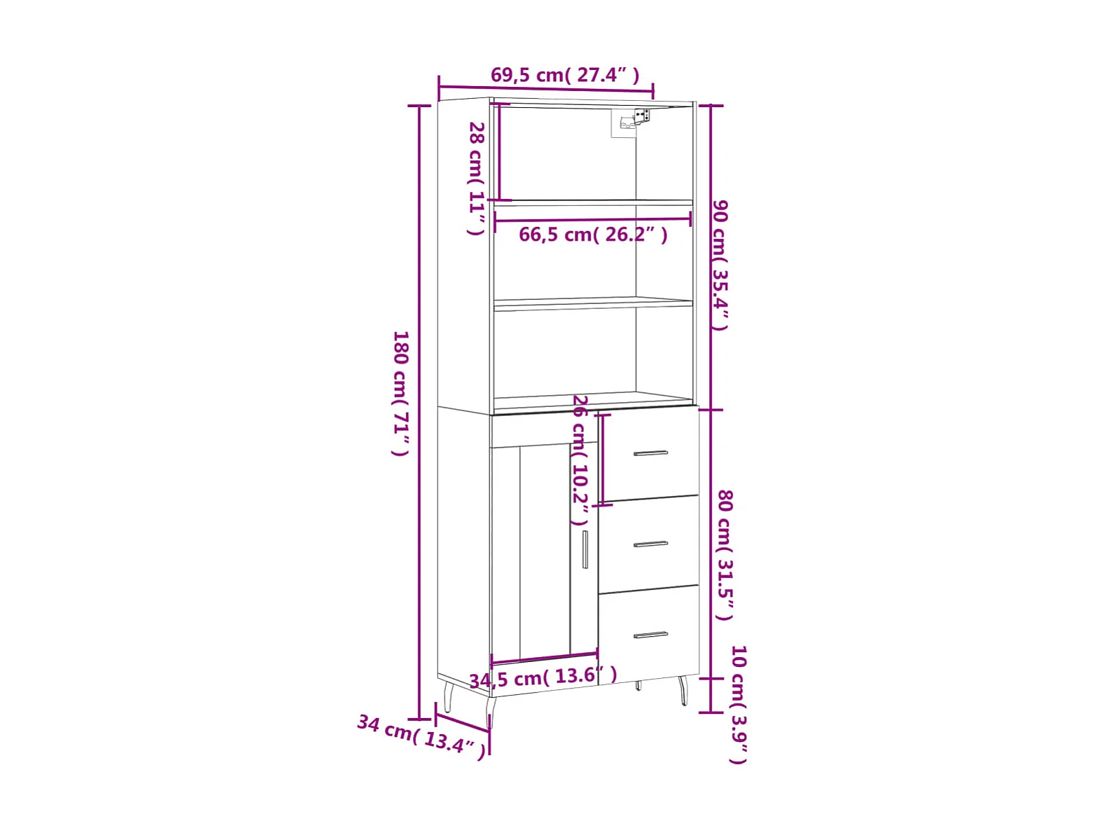 Armário alto 69,5x34x180cm madeira processada carvalho castanho