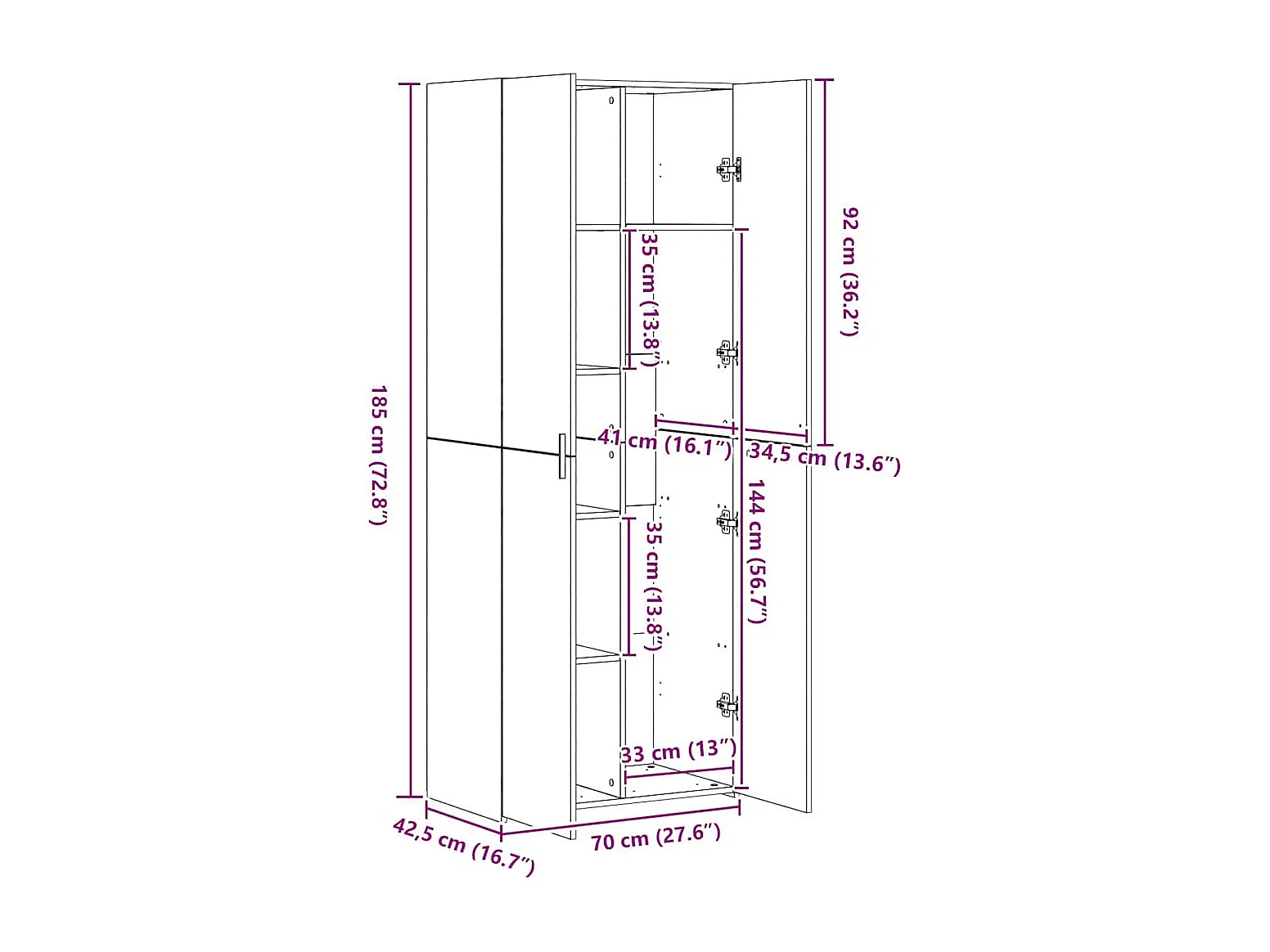 Armário alto 70x42,5x185 cm derivados madeira carvalho fumado