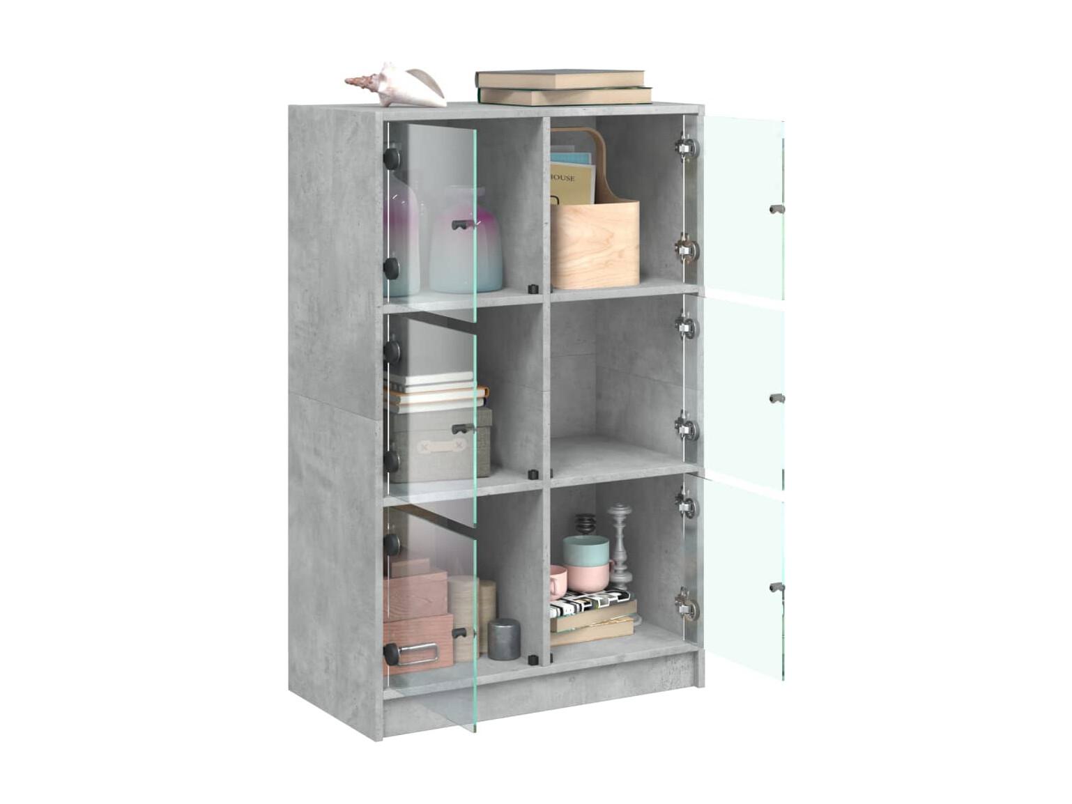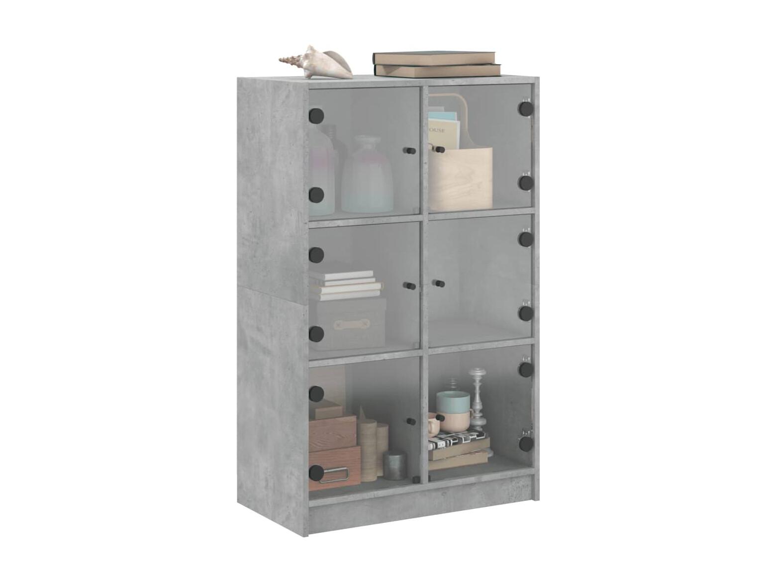 Armário alto com portas derivados de madeira cinzento cimento