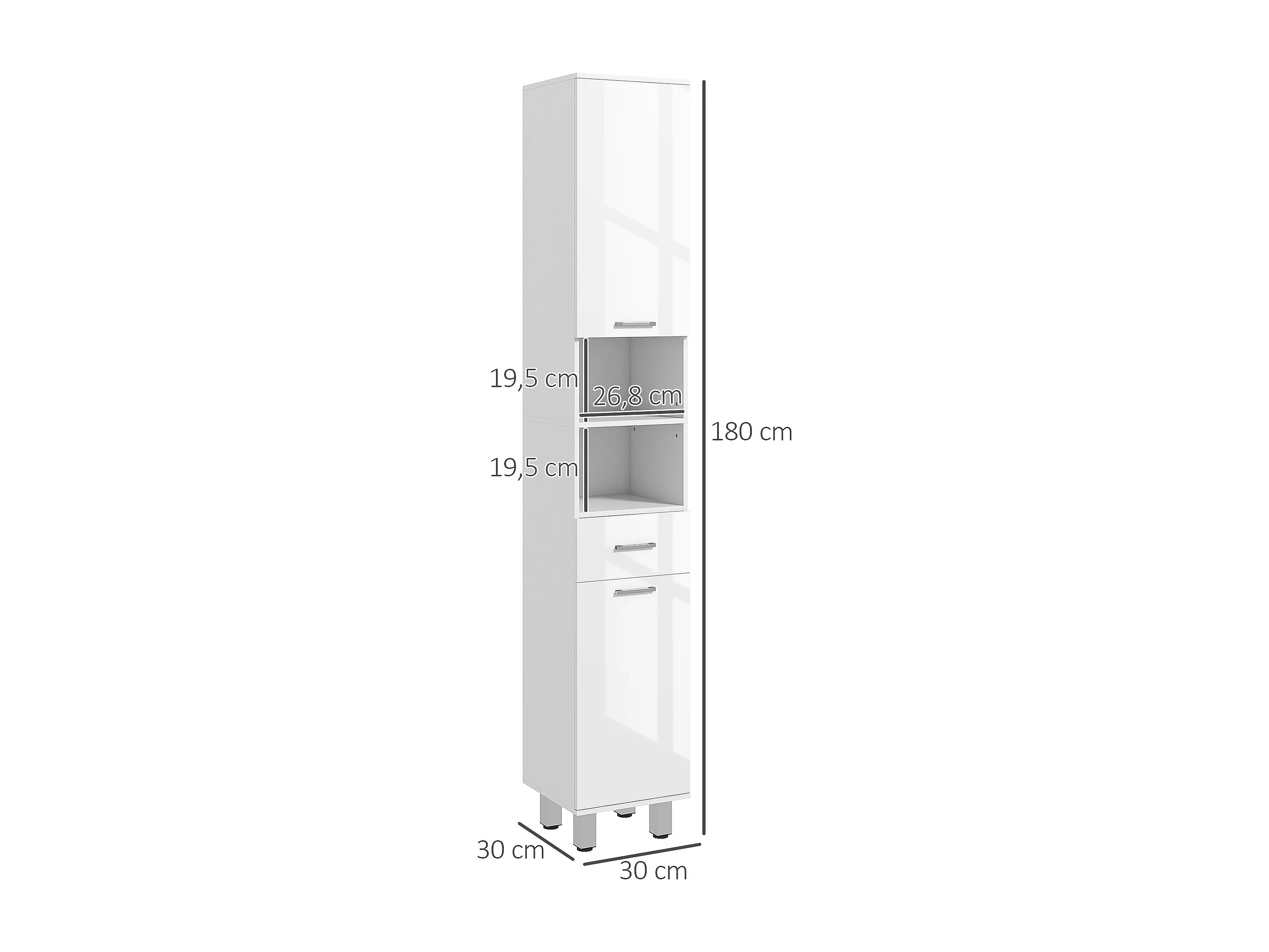 Armário Alto de Casa de Banho Damise 180cm - Branco - Estilo Moderno e Funcional