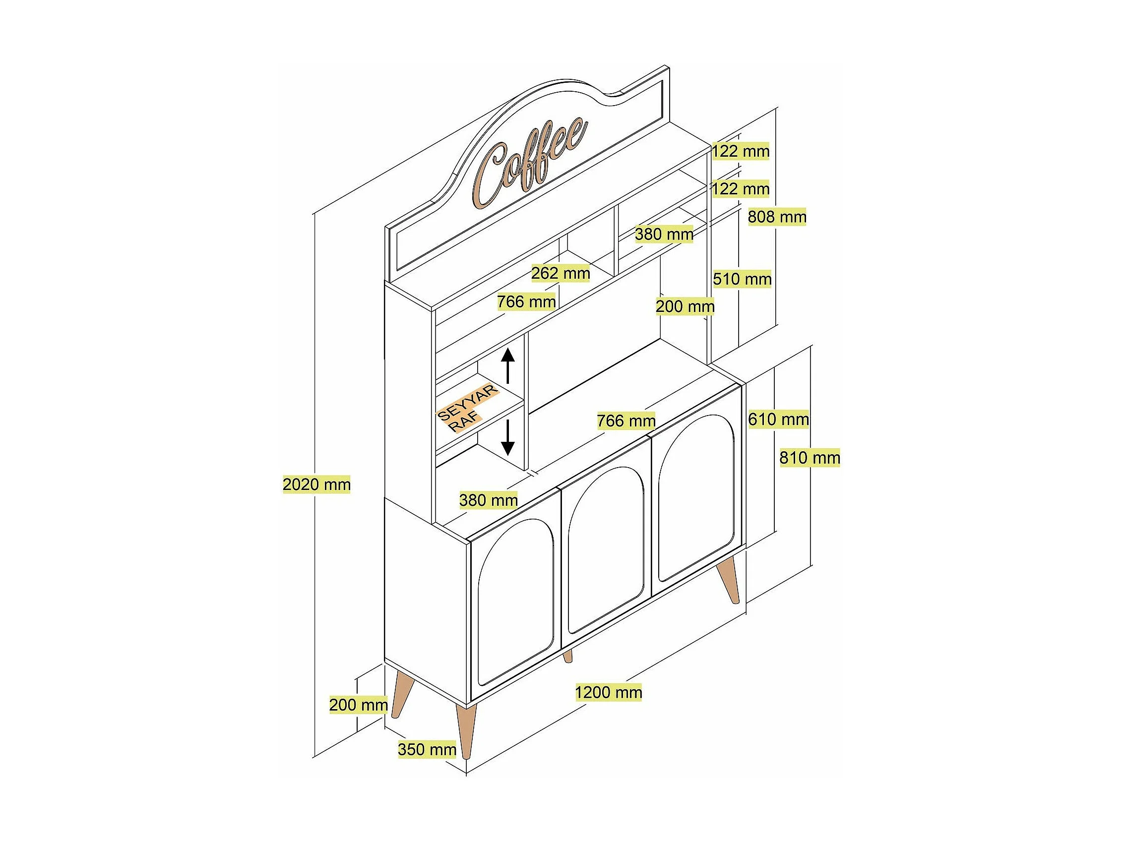 Armário Alto de Cozinha 'Coffee' - 200x120x35 cm - Estilo Moderno em Atlas e Nogueira