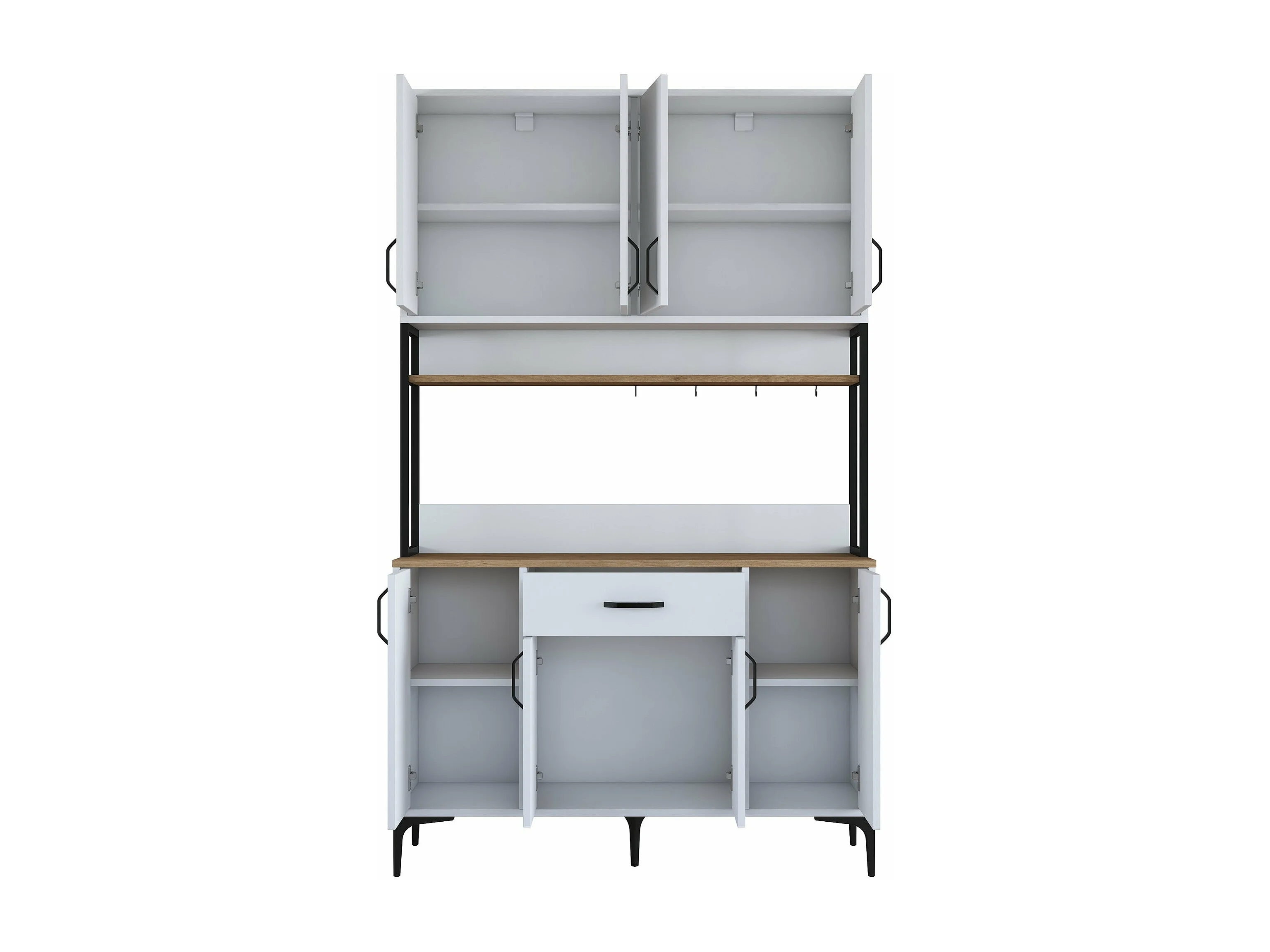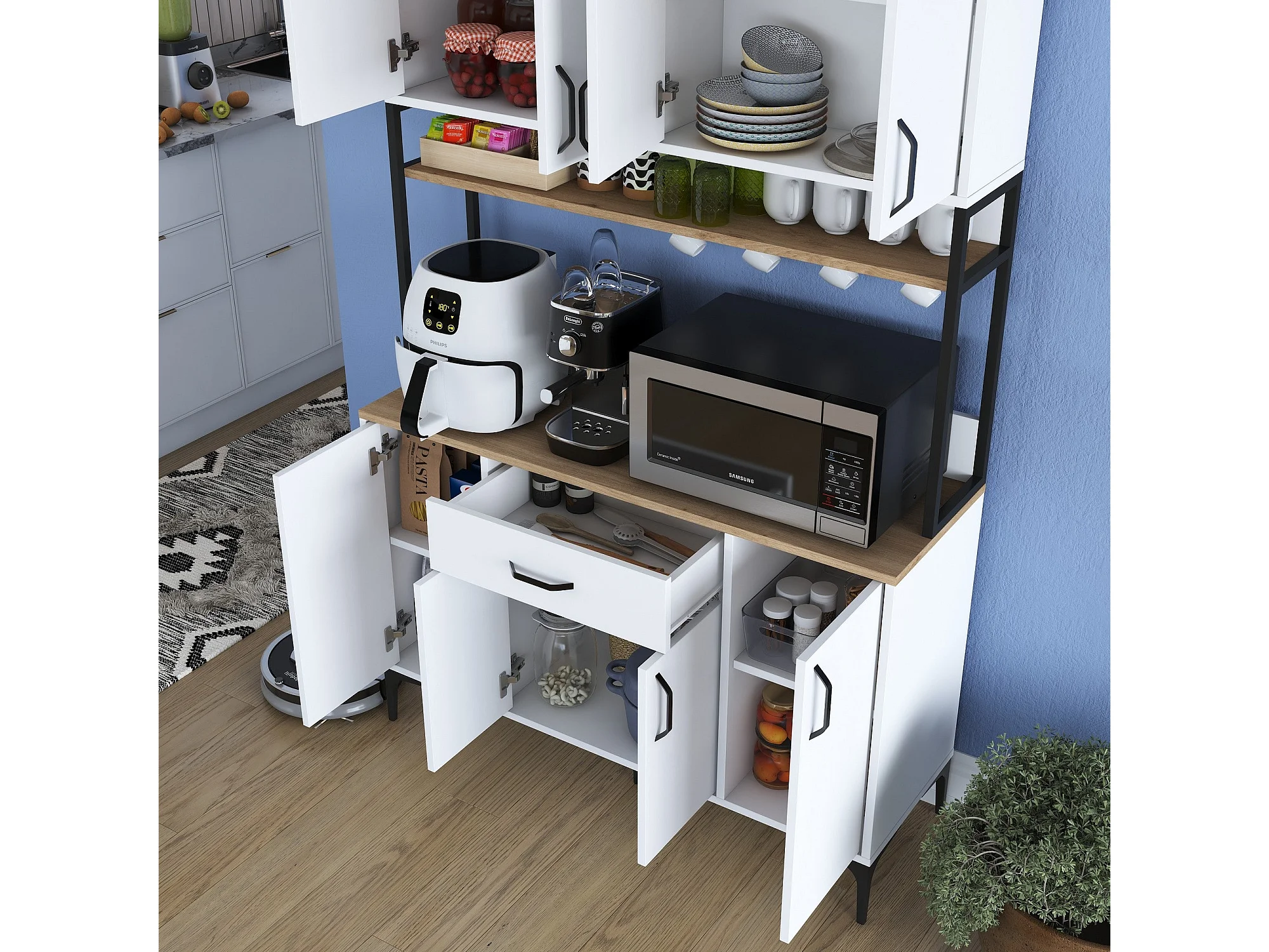 Armário Alto de Cozinha Stella - Design Moderno em Nogueira e Branco - 120 x 198,6 x 40 cm