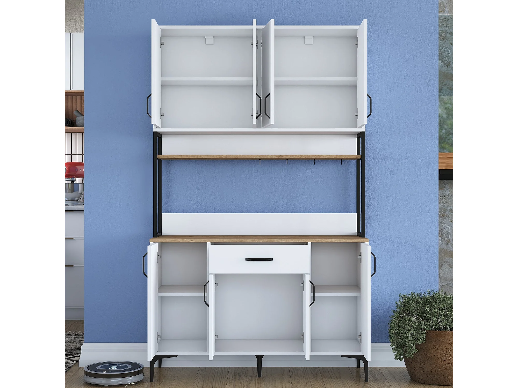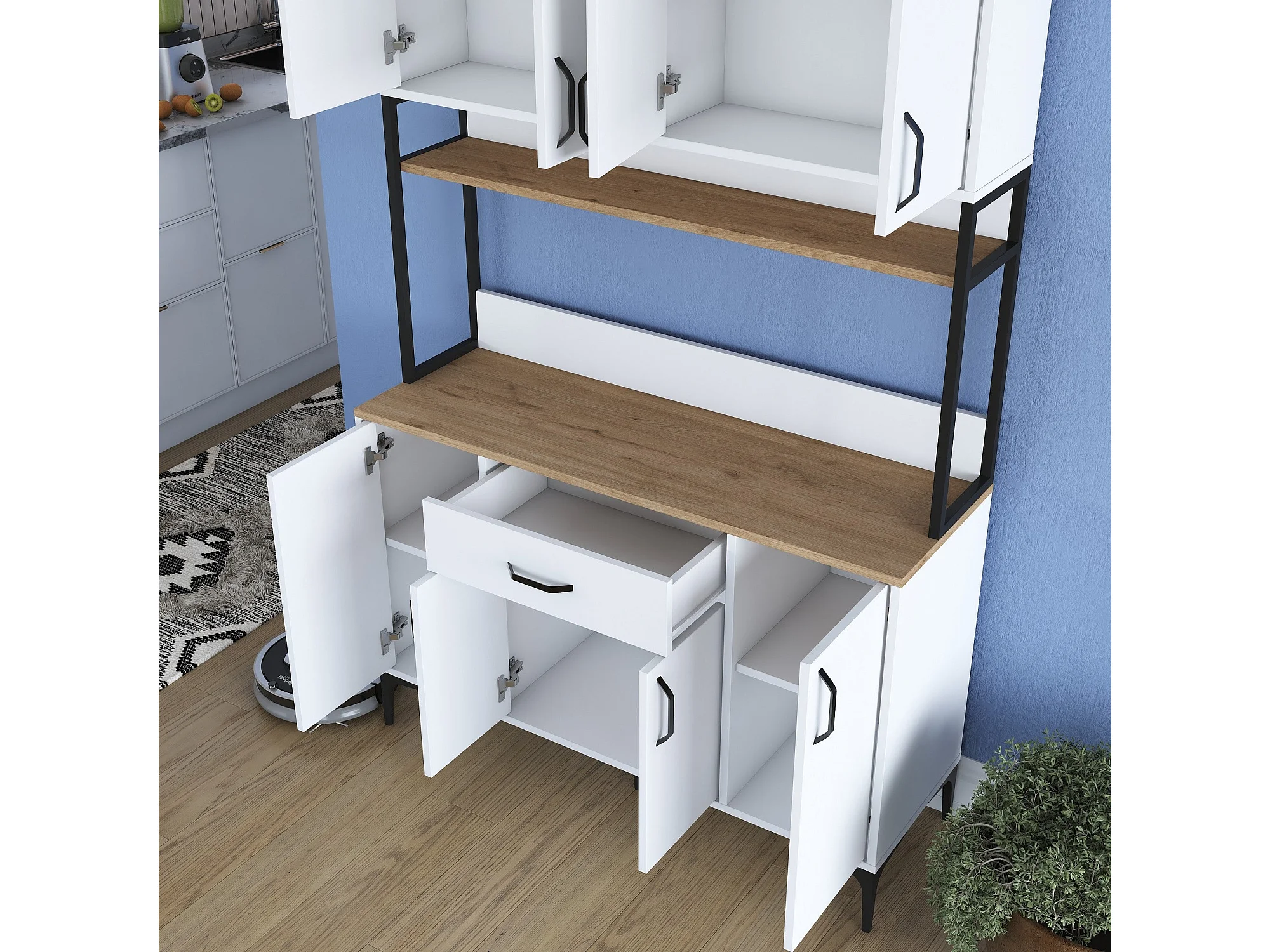Armário Alto de Cozinha Stella - Estilo Moderno e Funcionalidade - 120 x 187,2 x 40 cm - Branco e Nogueira