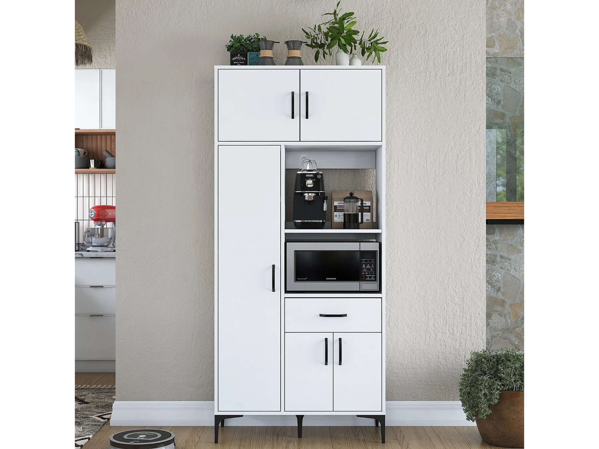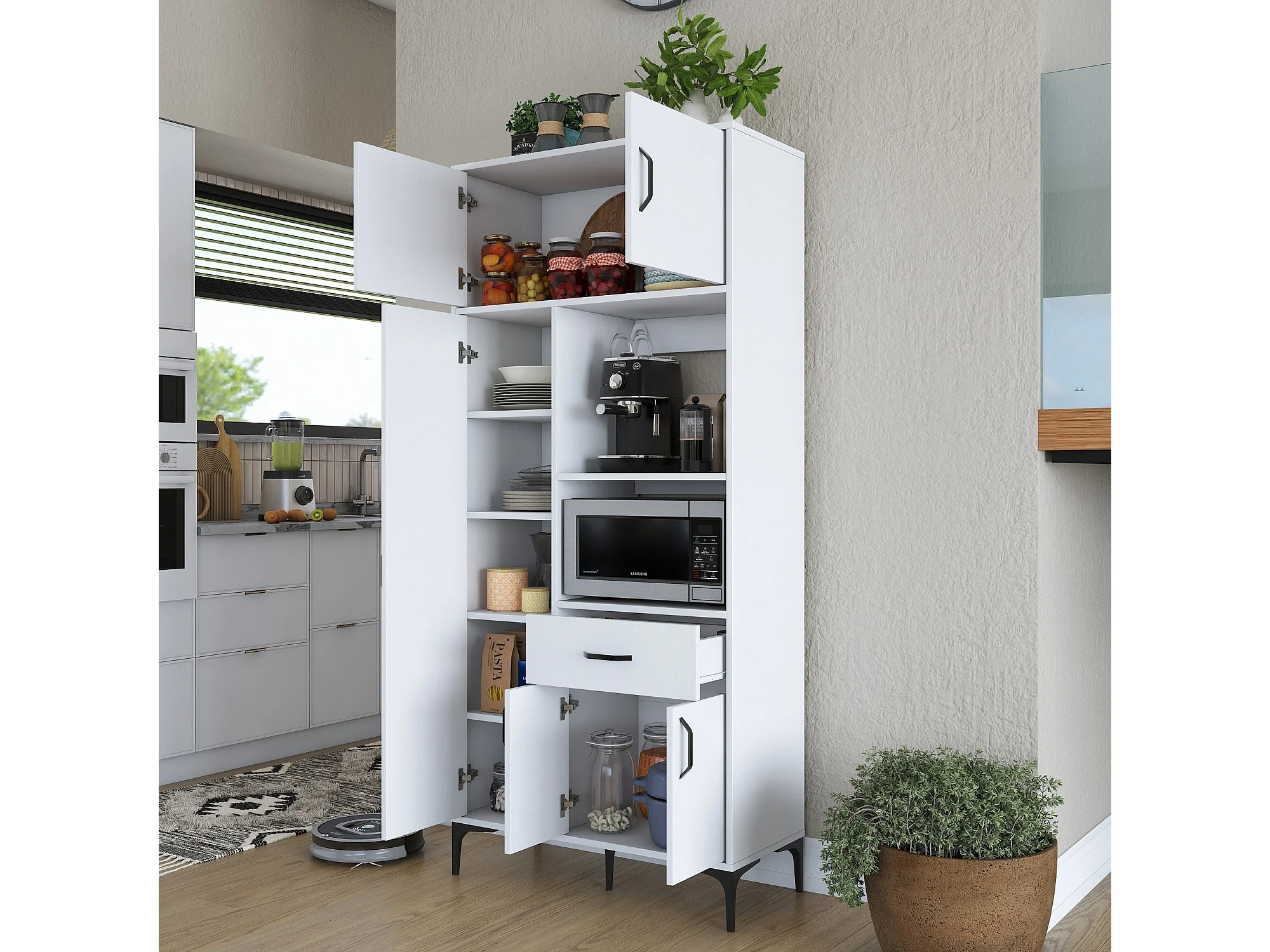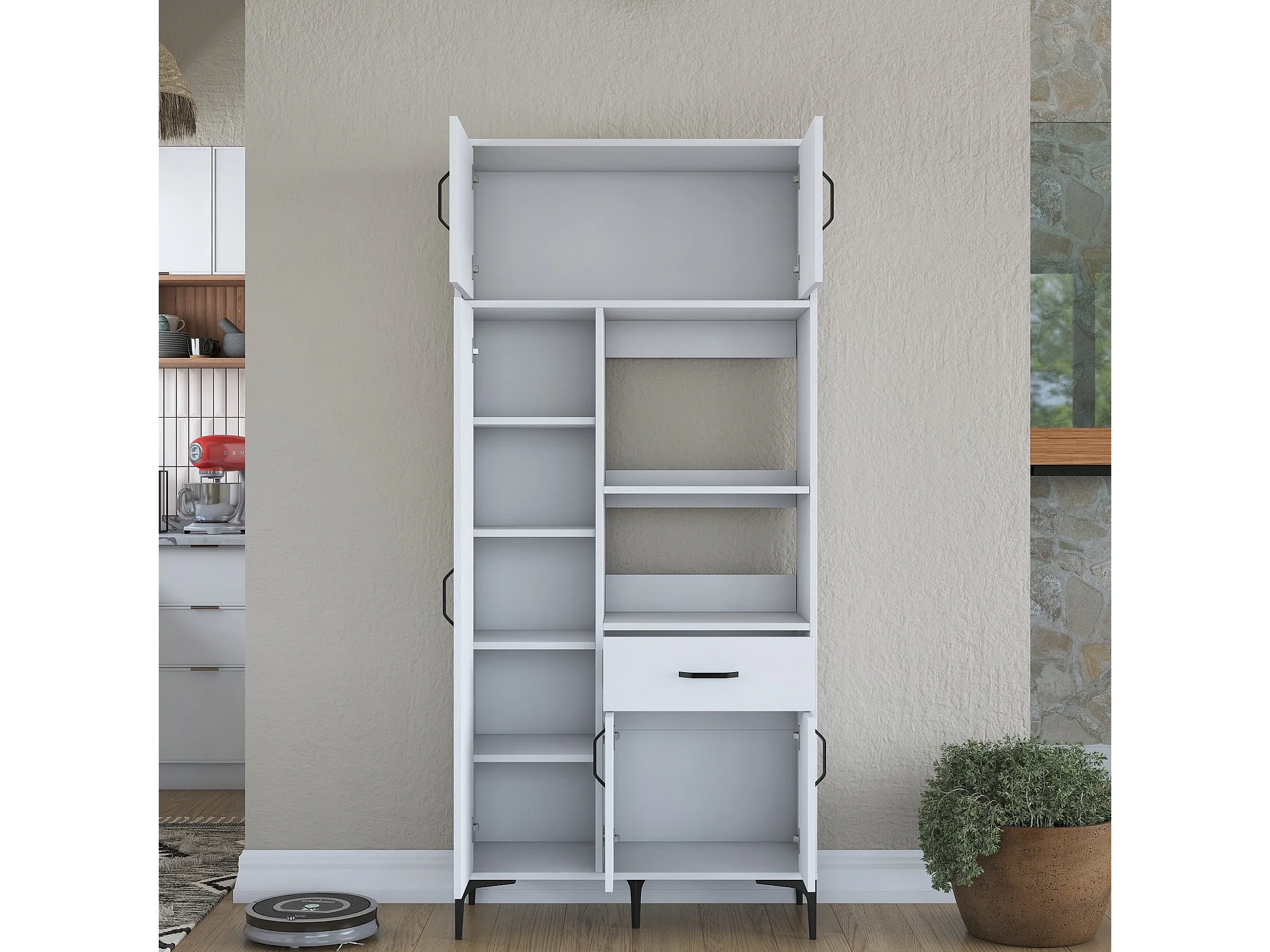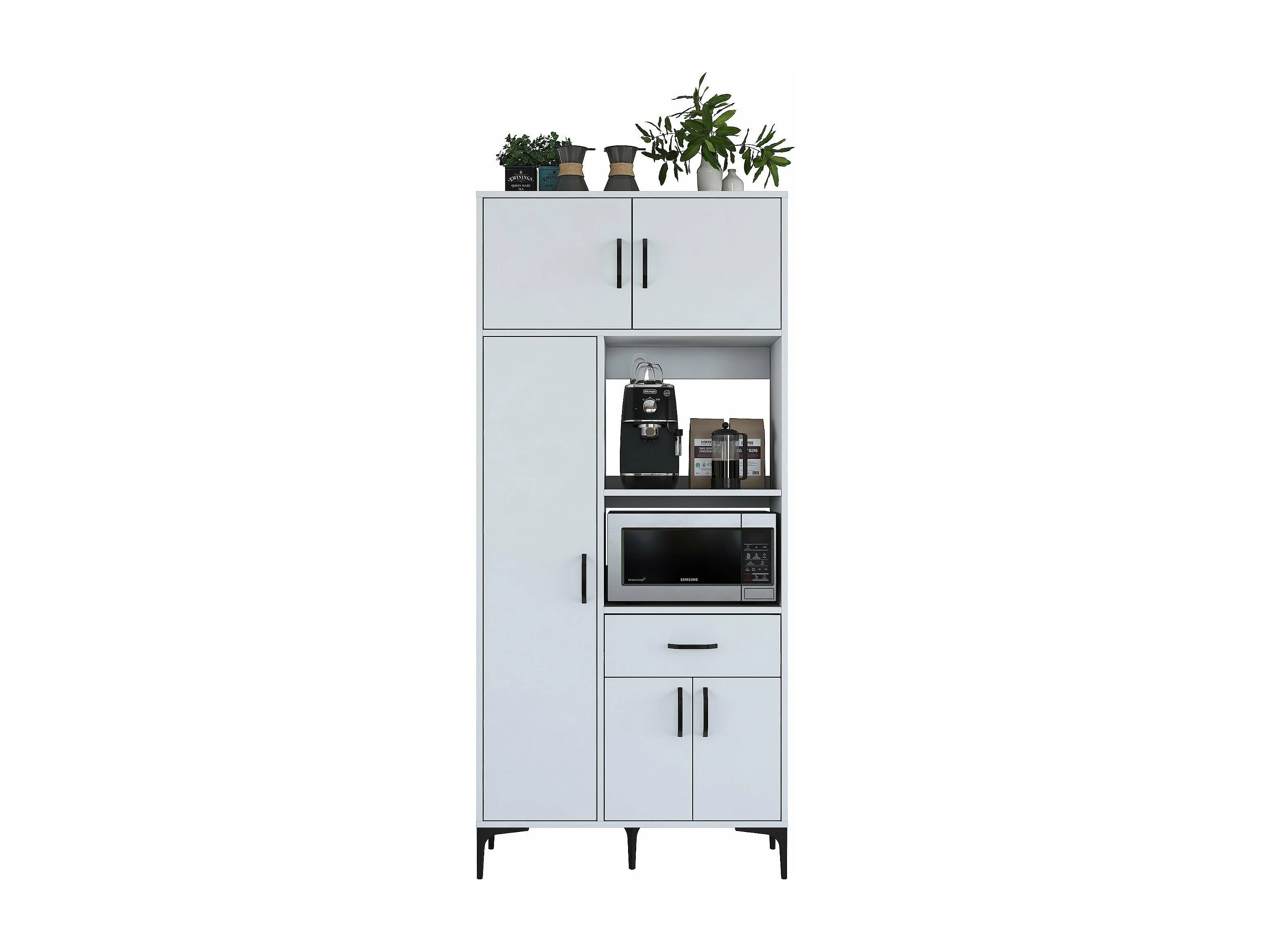 Armário Alto de Cozinha Stella - Branco Moderno - 90 x 198,6 x 40 cm para Organização Elegante