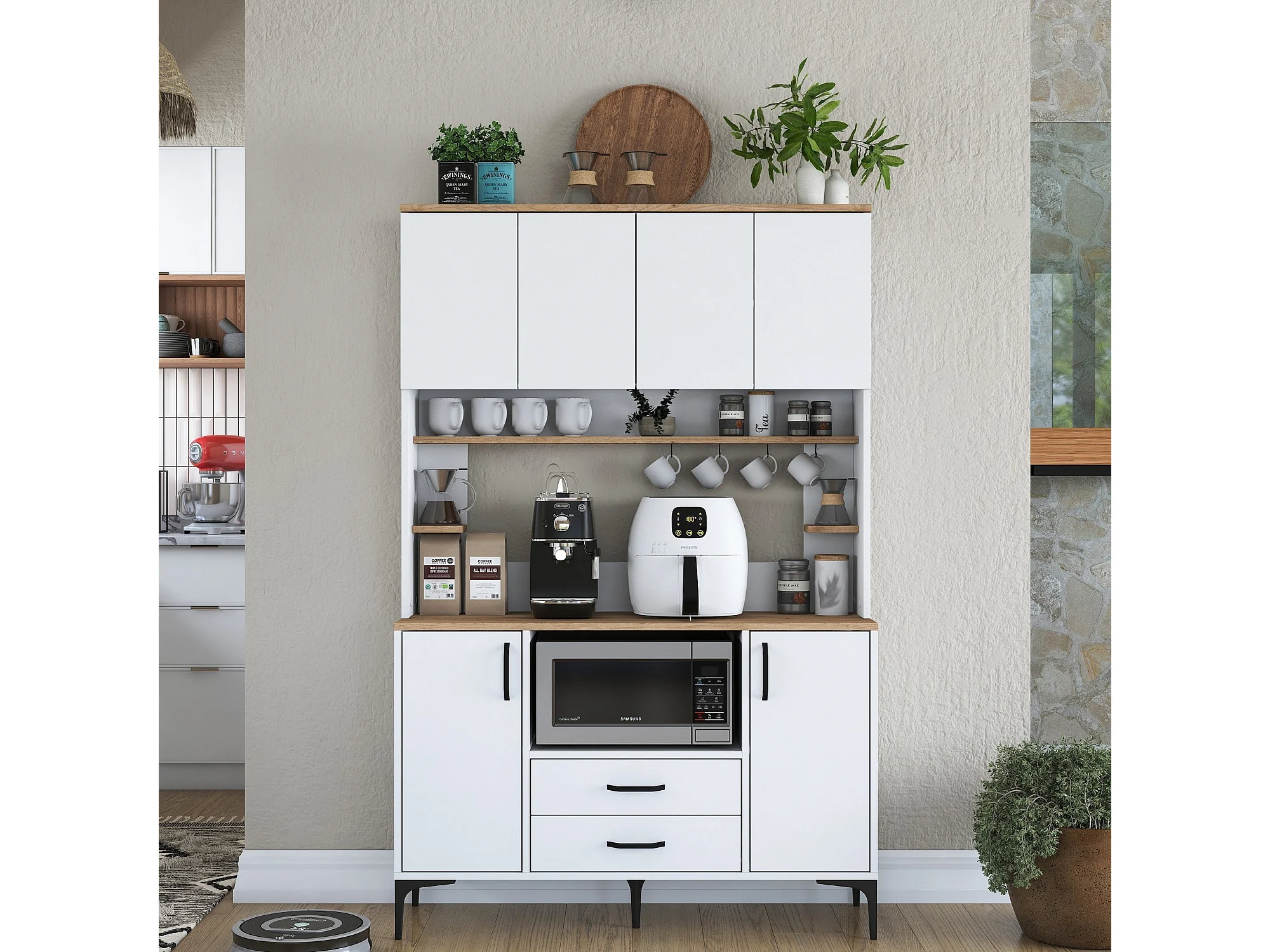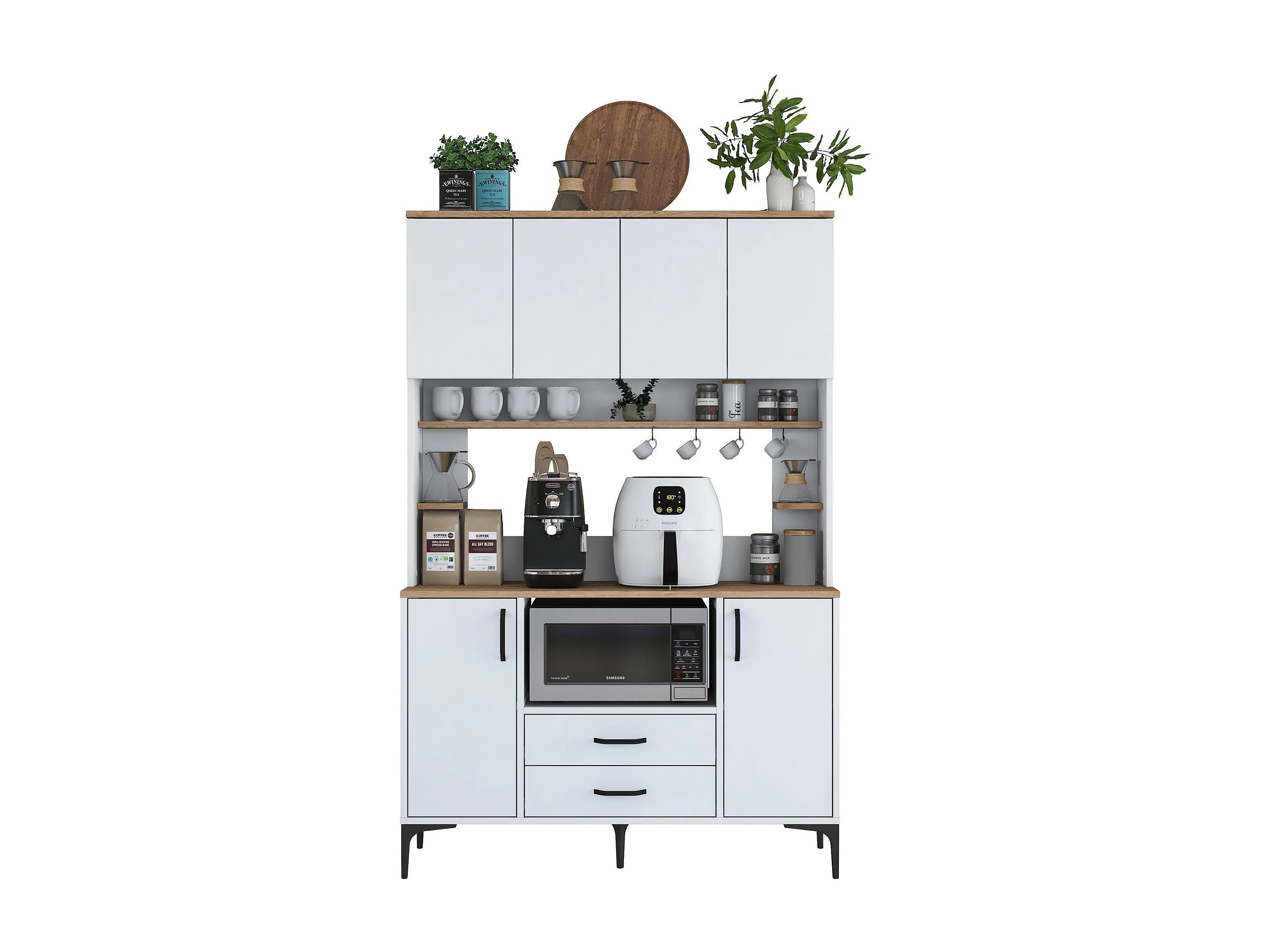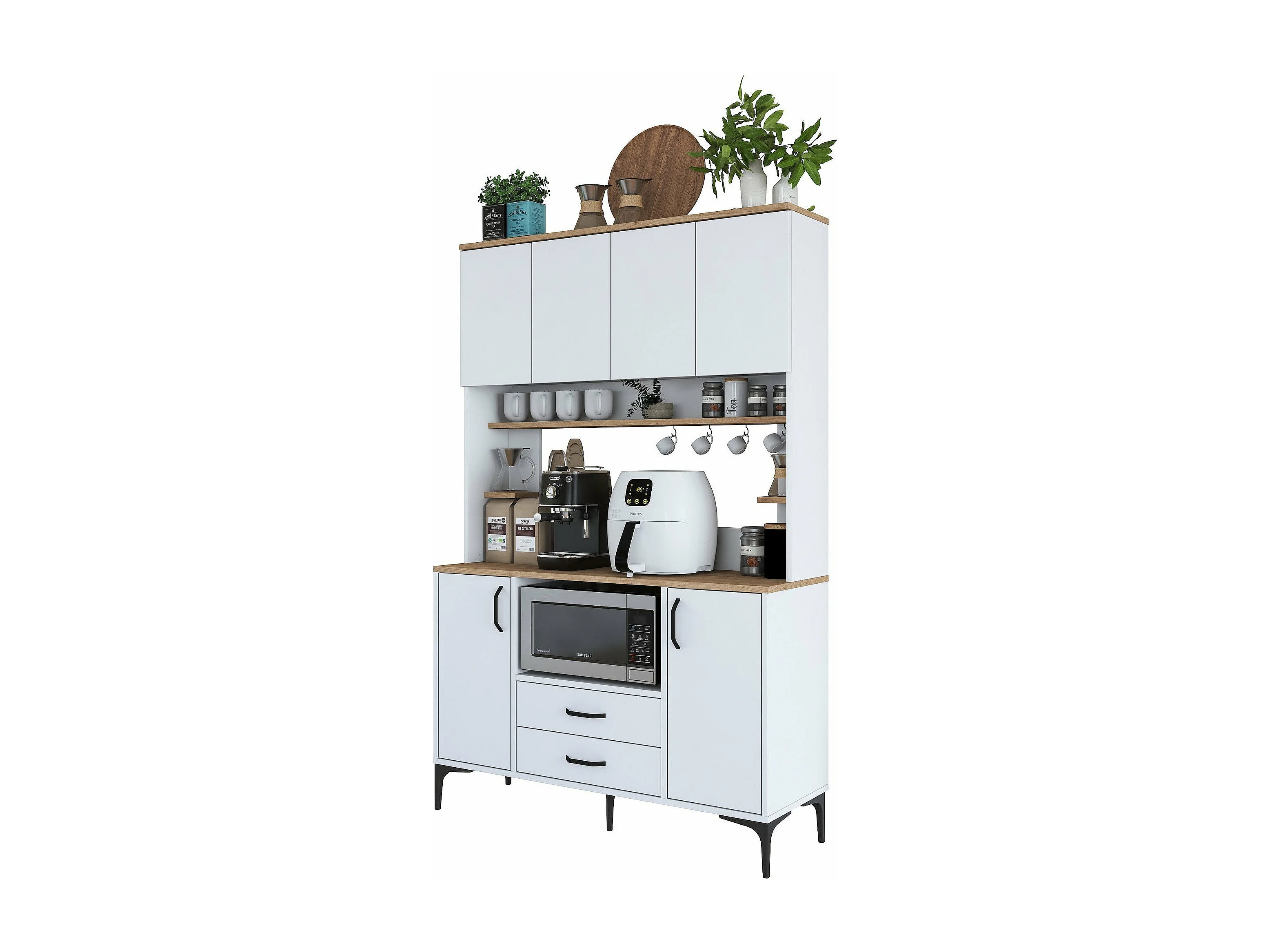 Armário Alto de Cozinha Stella - Organização Estilosa e Funcional em Branco e Nogueira
