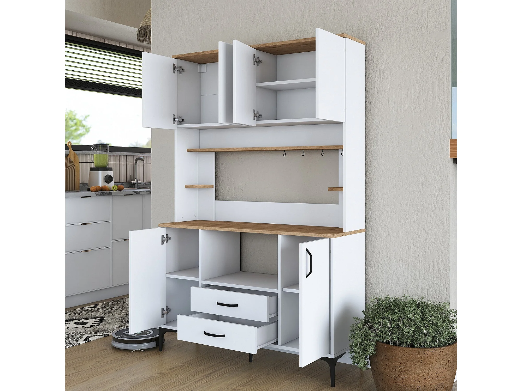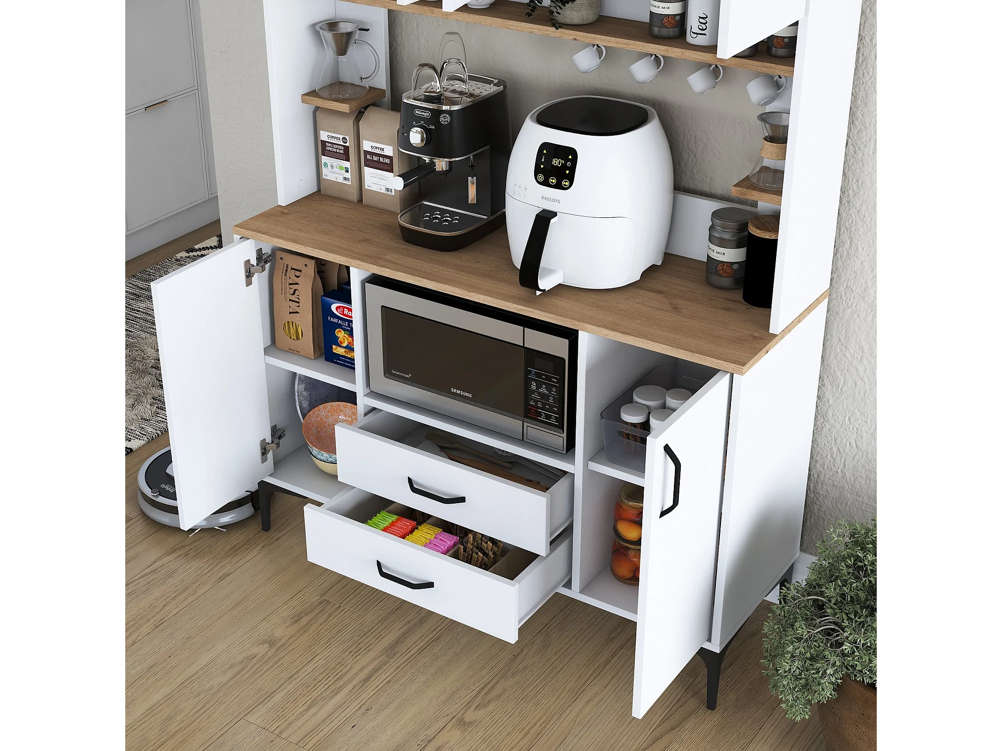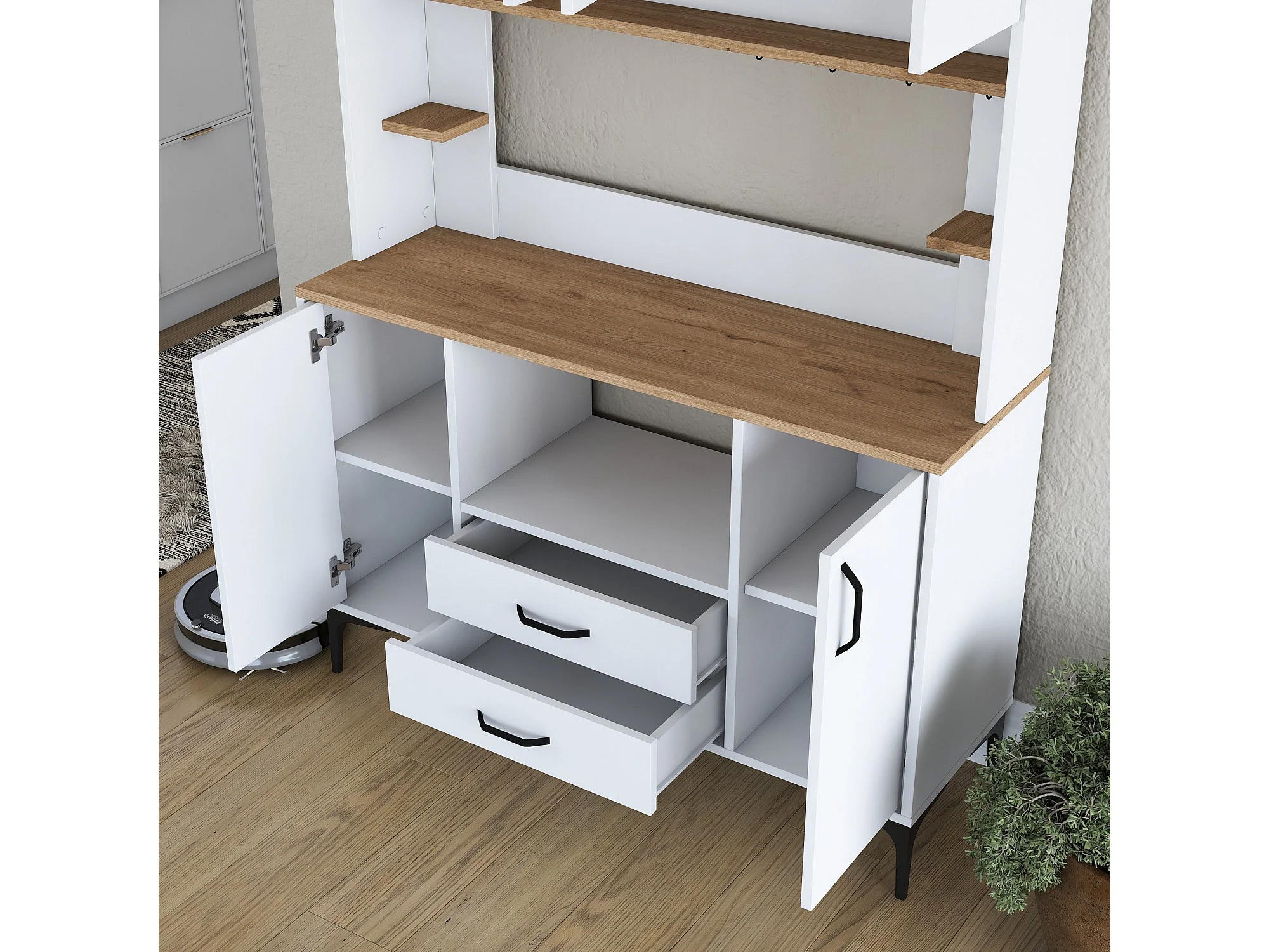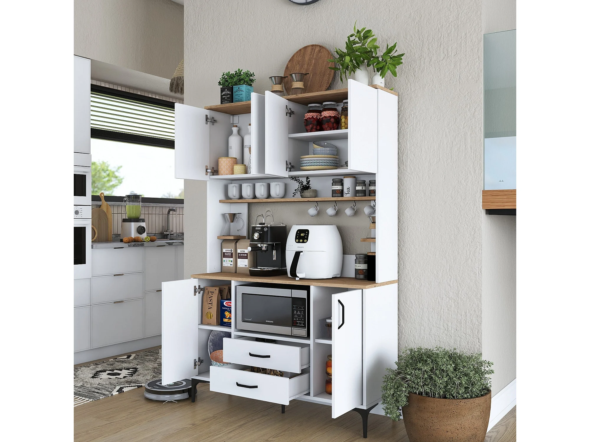 Armário multiuso Dbakke, Armário auxiliar de cozinha, Aparador com 4 portas e 1 gaveta com prateleiras, Armário aberto, 72x40h186 cm, Branco e Carvalho