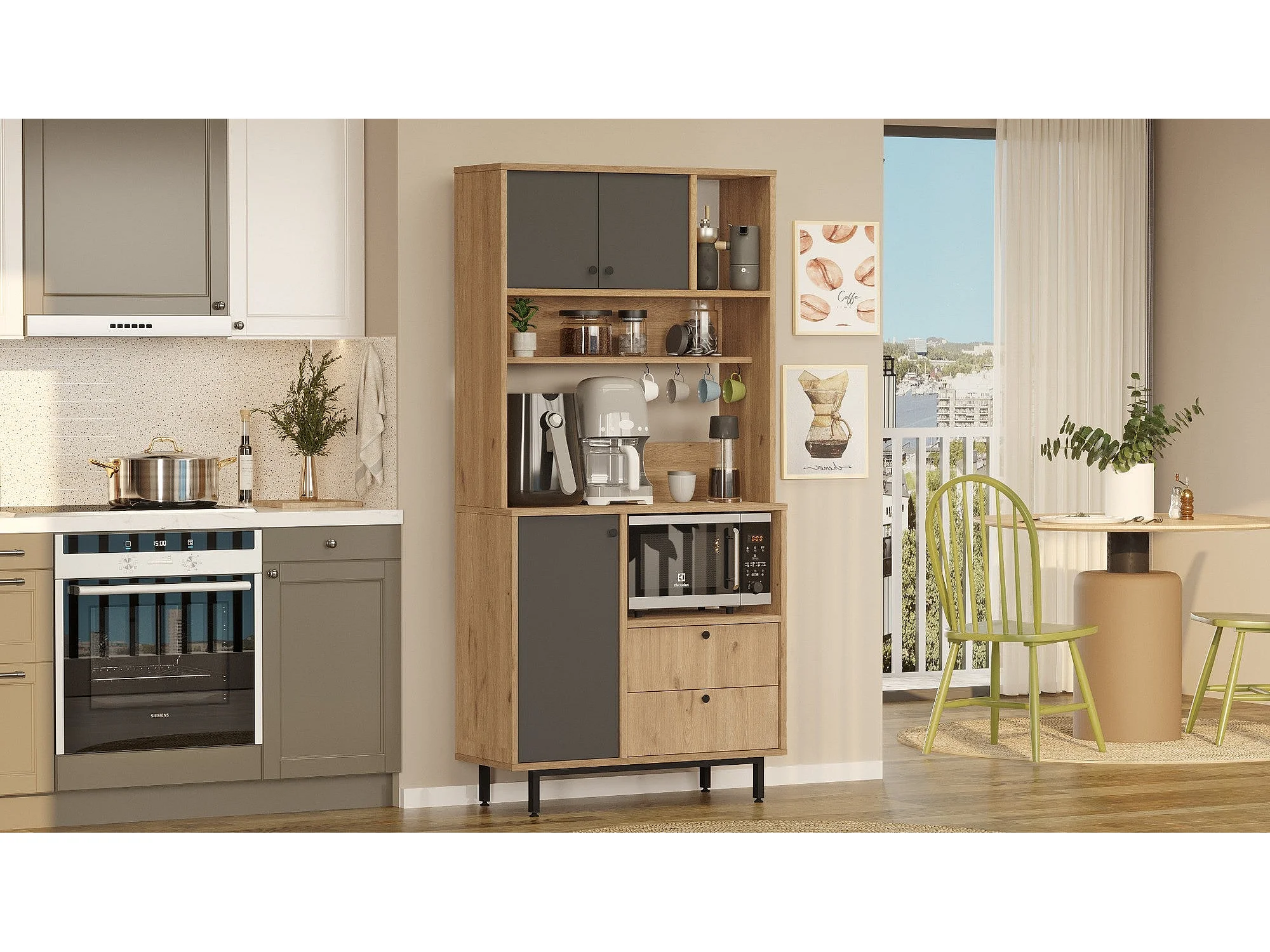 Aparador de Cozinha Toledo em Carvalho e Antracite - Design Moderno e Funcional