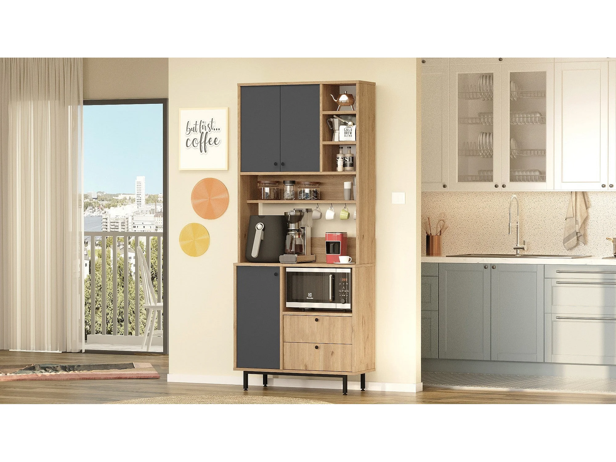 Armário Alto de Cozinha Toledo em Carvalho e Antracite - Design Moderno e Funcional 88x205x35.5cm