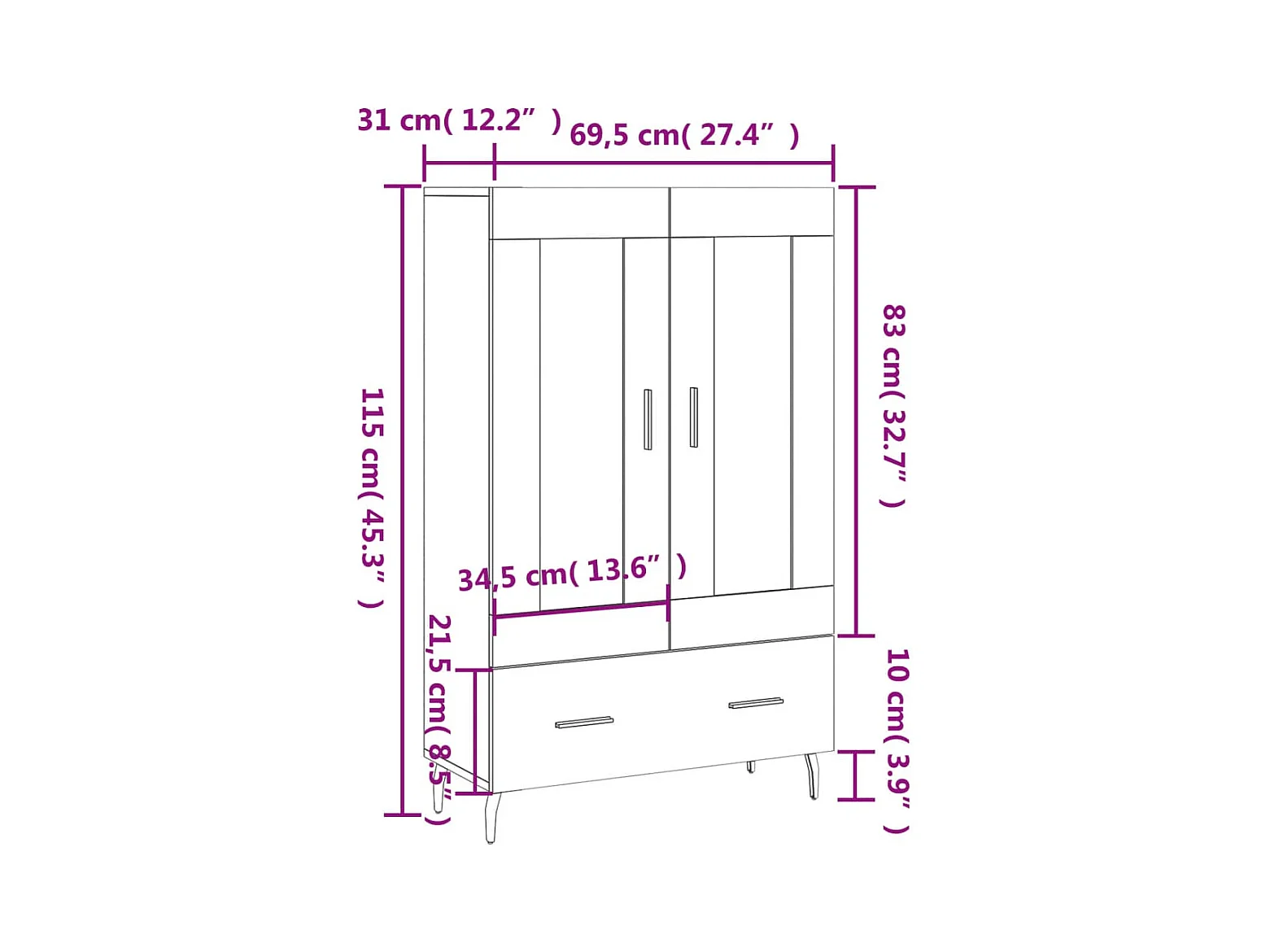 Aparador alto derivados de madeira 69,5x31x115cm carvalho sonoma PT583393
