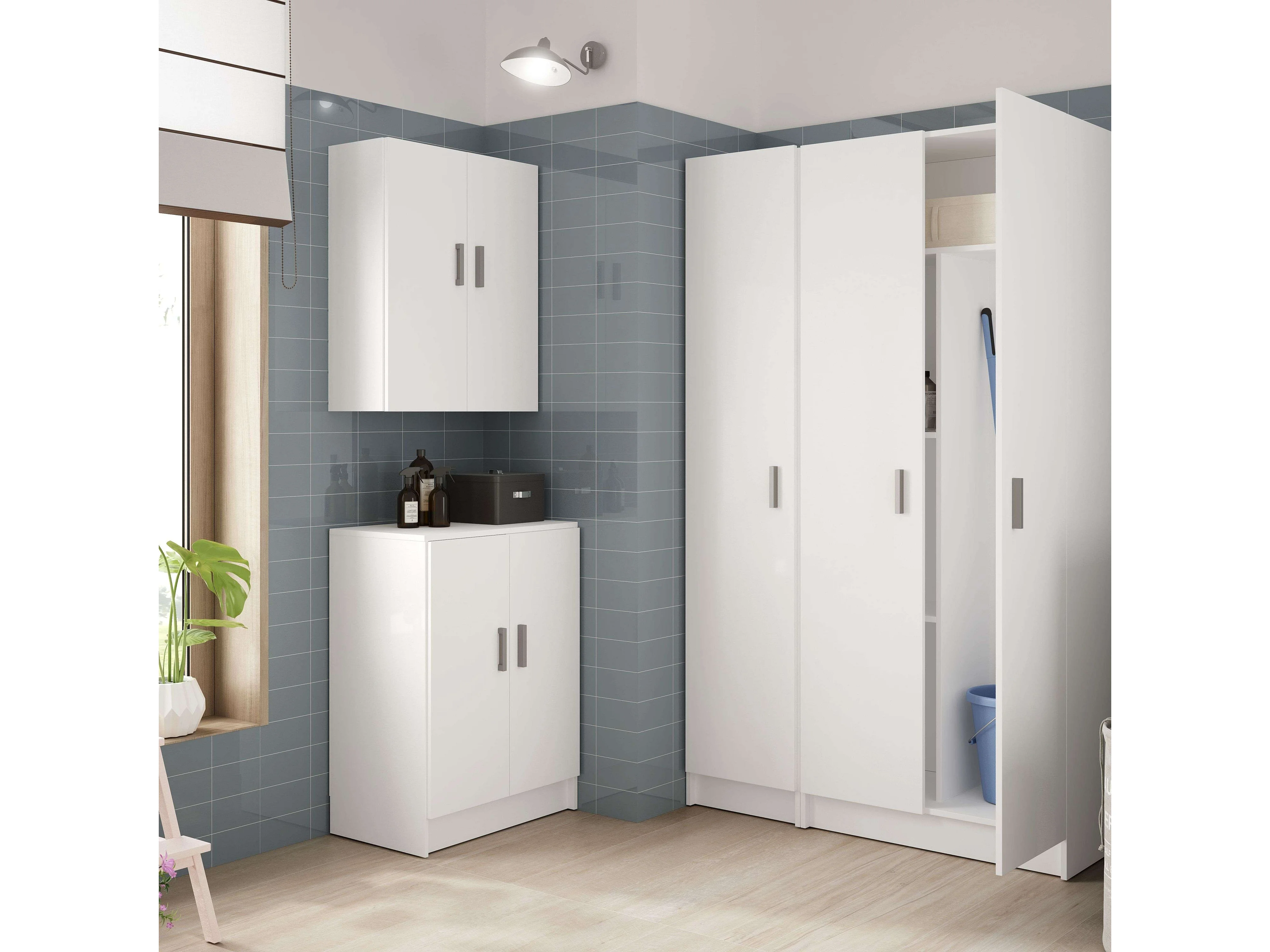 Armário multiuso, 1 porta, 3 prateleiras, Artik branco/cinza cimento, 182x41x37 cm