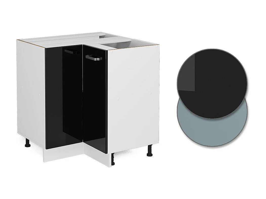 Armário baixo de canto preto alto brilho 75.6x60x81.6 r-line