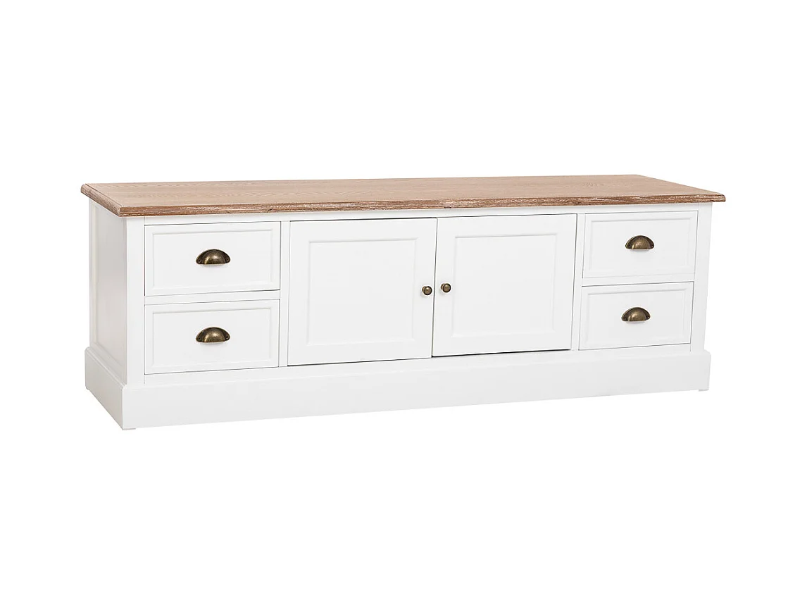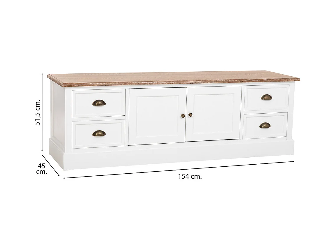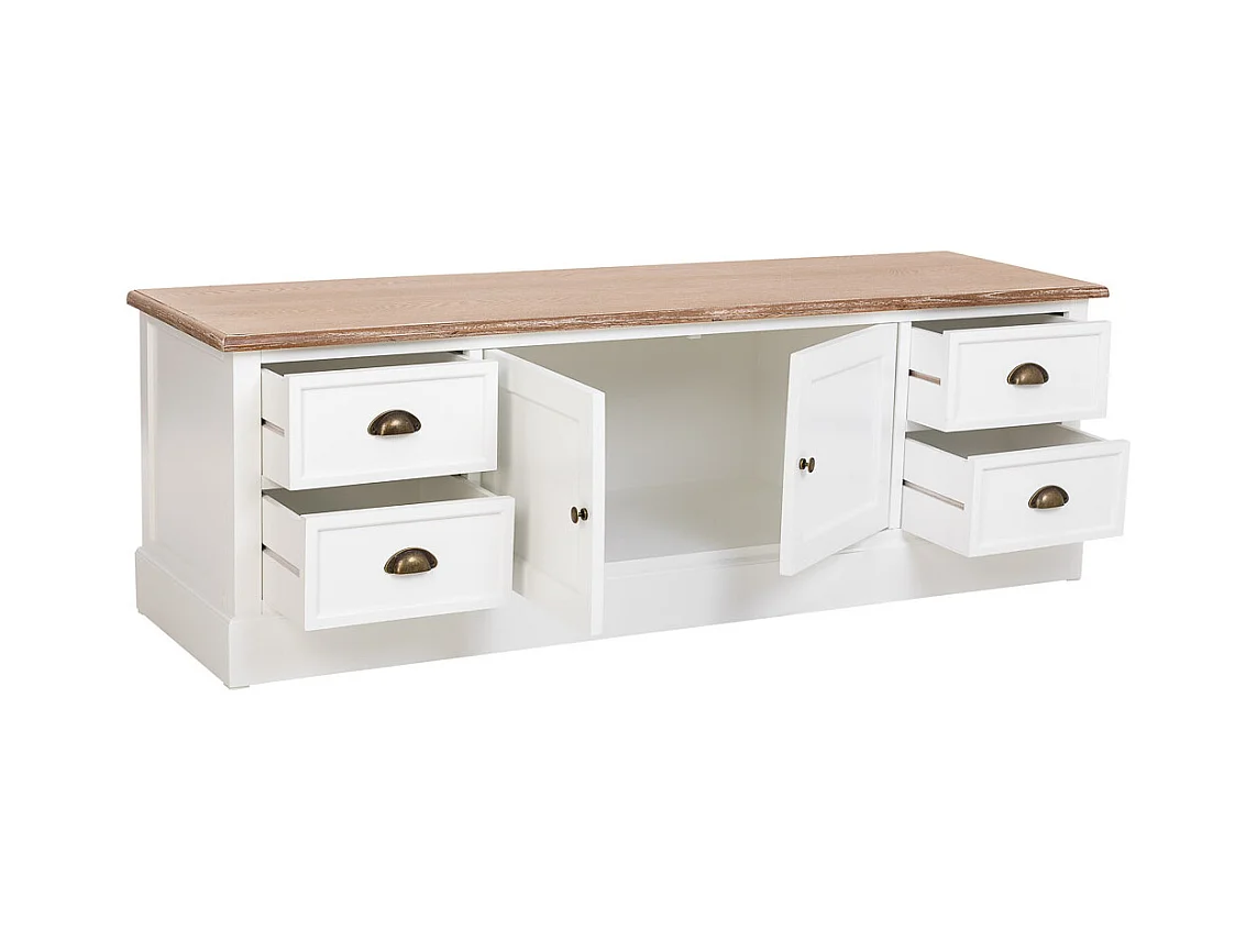 Armário baixo em madeira branca com 2 portas 4 gavetas 154x45x51,5 cm