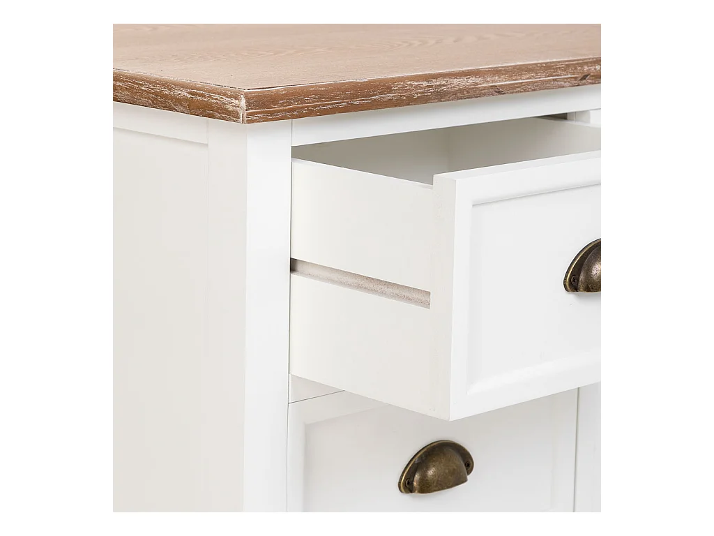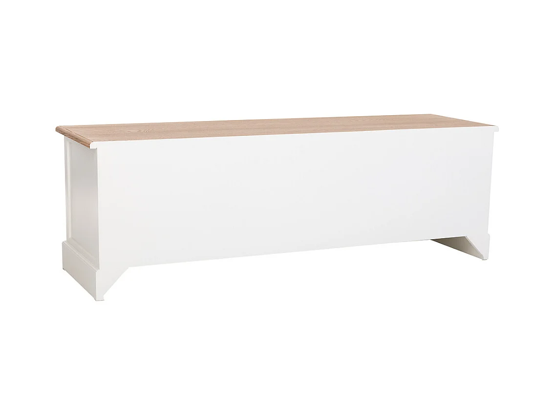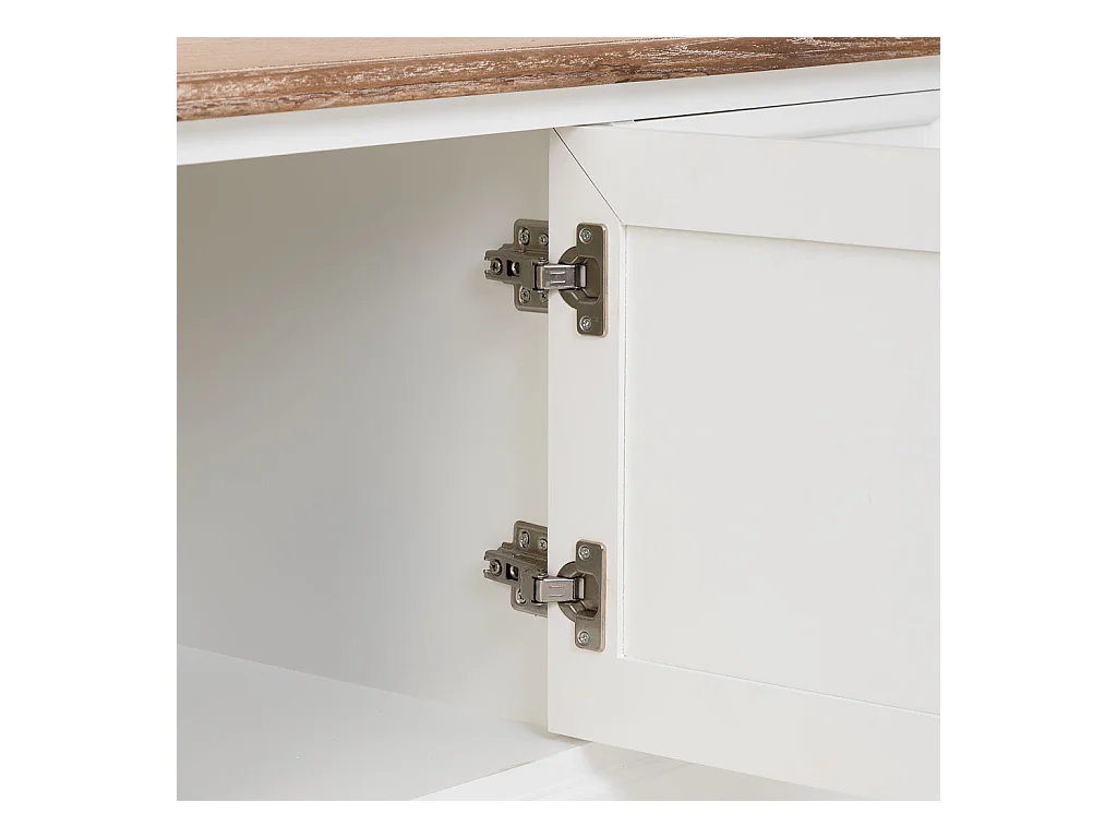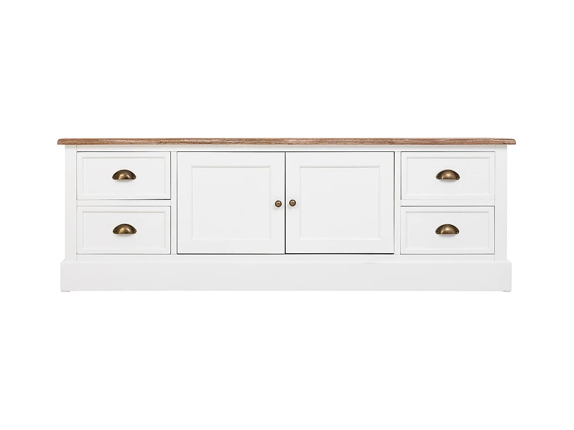 Armário baixo em madeira branca com 2 portas 4 gavetas 154x45x51,5 cm