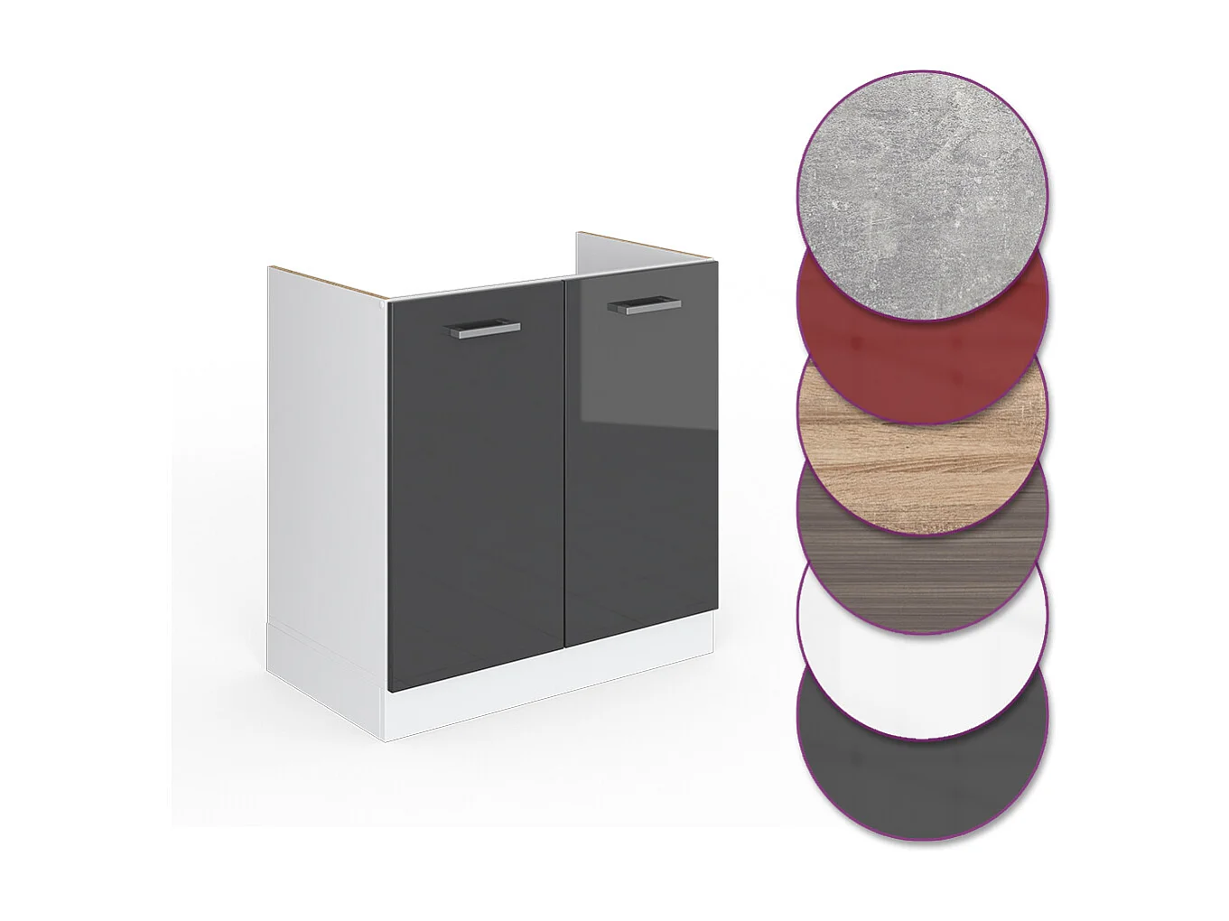 Armário baixo para pia antracite alto brilho 80x60x81.6 r-line
