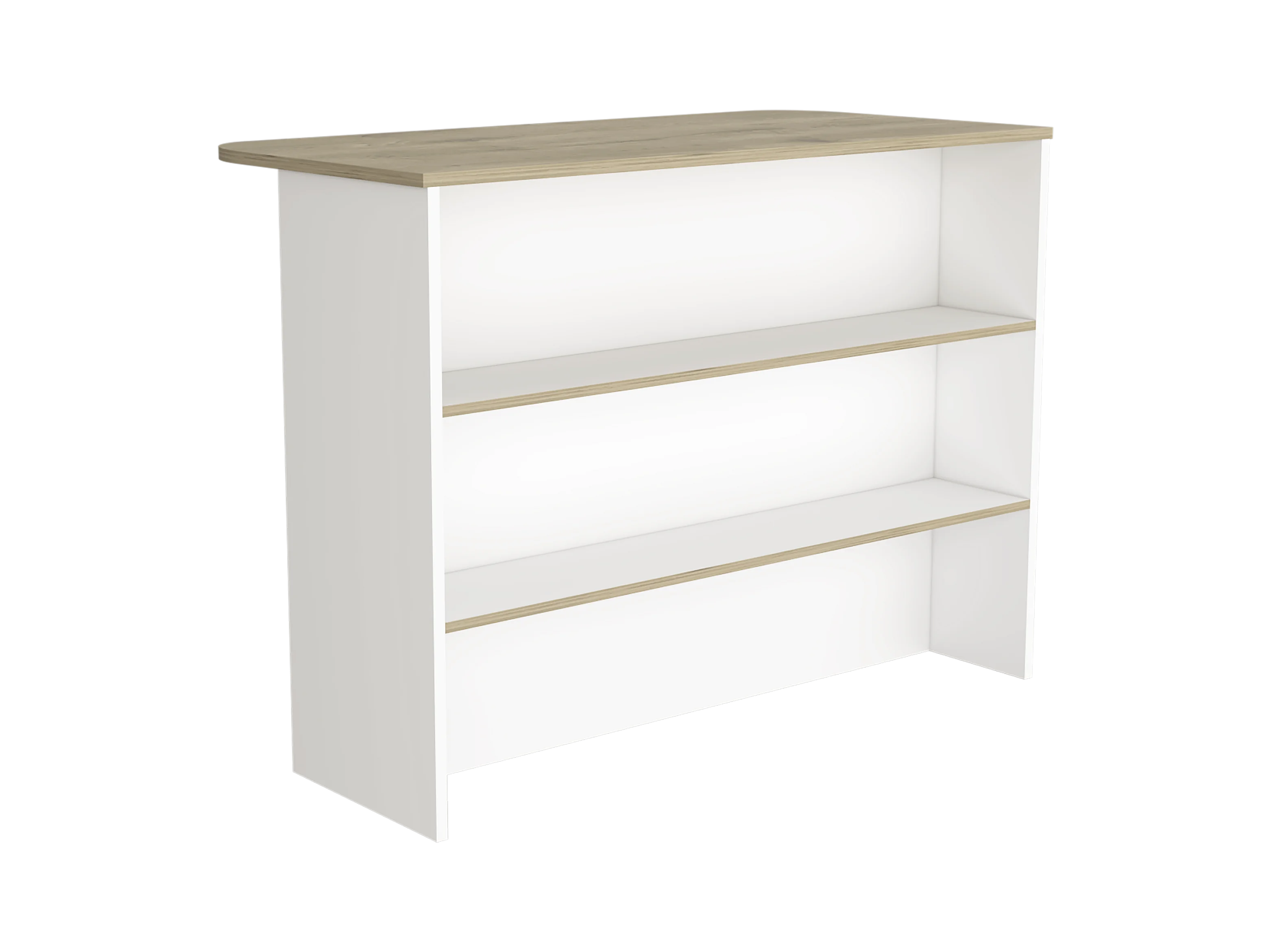 Armário bar de cozinha em melamina Fendi com três prateleiras, 90 X 120 X 60 cm, Branco / Mel