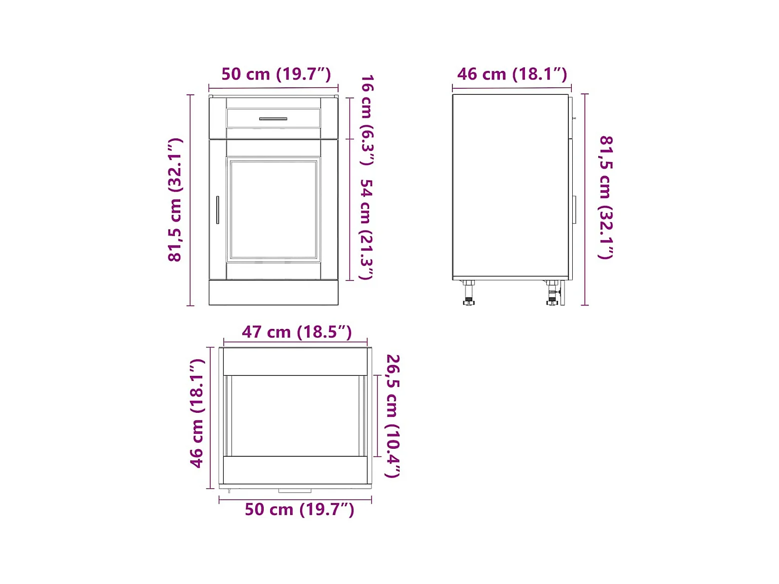 Armário de cozinha baixo Kalmar madeira artificial branca