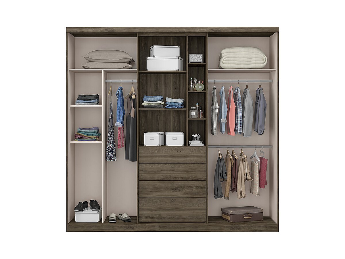 Guarde os seus objetos facilmente graças a este grande armário com numerosos espaços de arrumação! Com os seus 4 varões, as suas múltiplas prateleiras e as 4 gavetas, este armário permite-lhe arrumar os seus casacos e fatos assim como as suas calças e t-shirts!