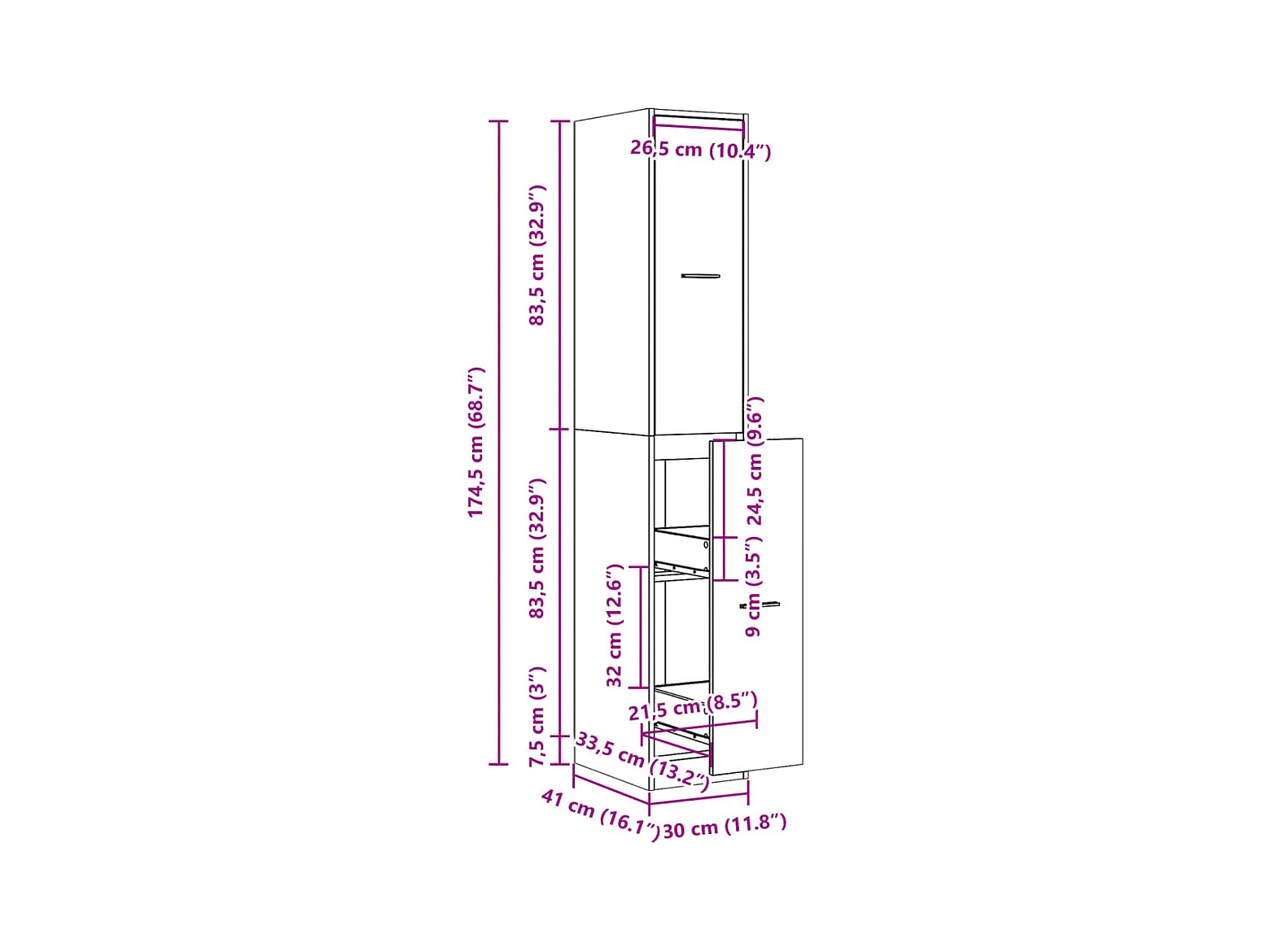 Armário boticário de carvalho marrom 30x41x174,5 cm madeira projetada