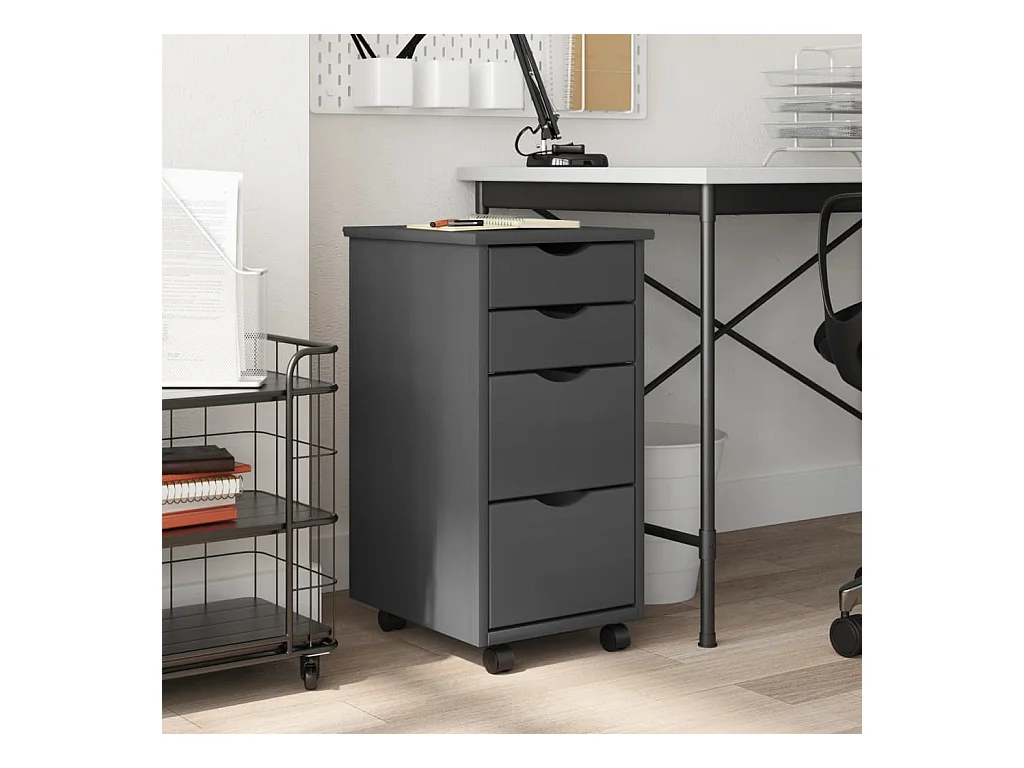 Armário c/ rodas e gavetas MOSS madeira pinho maciça cinzento PT407840