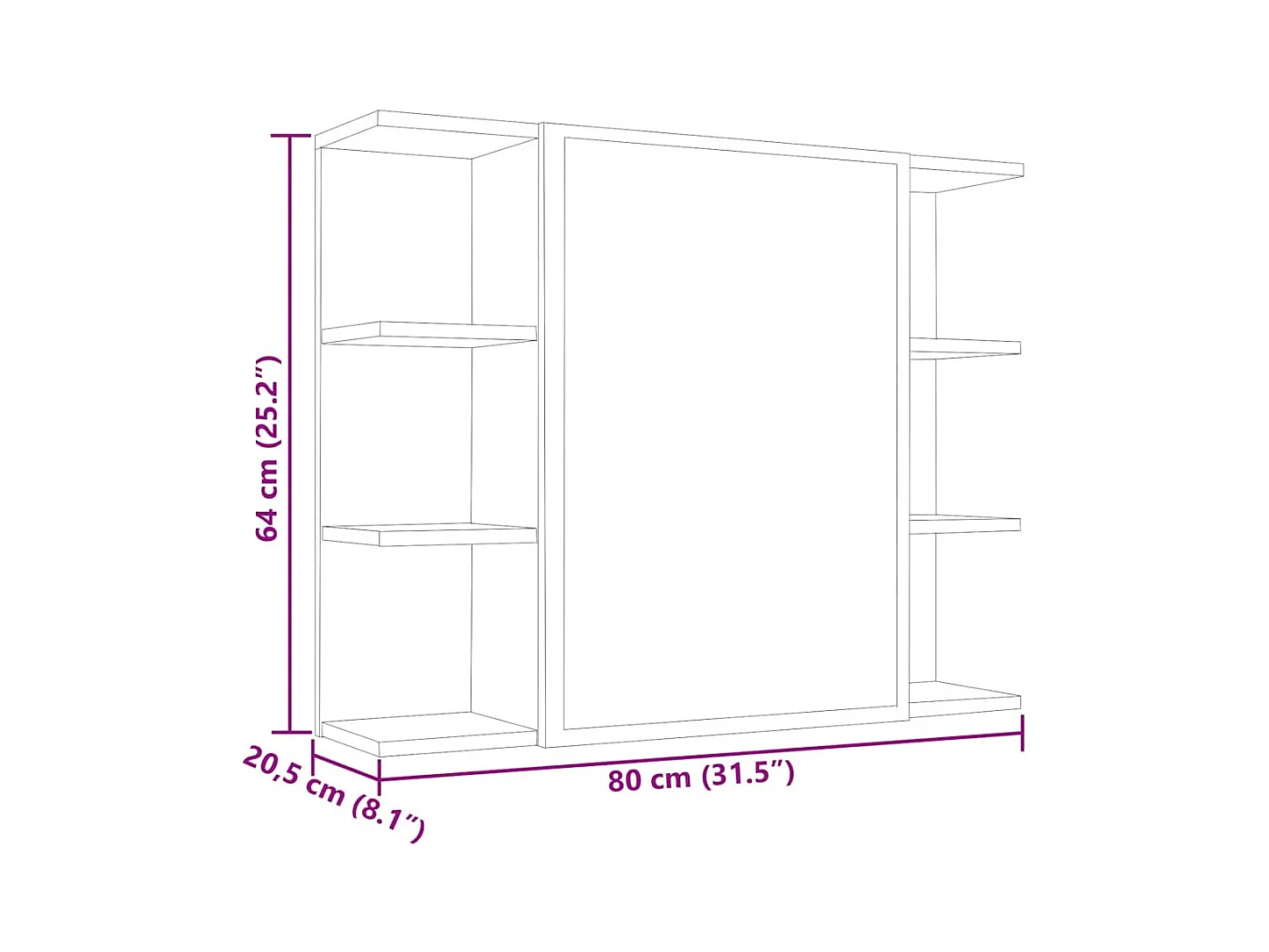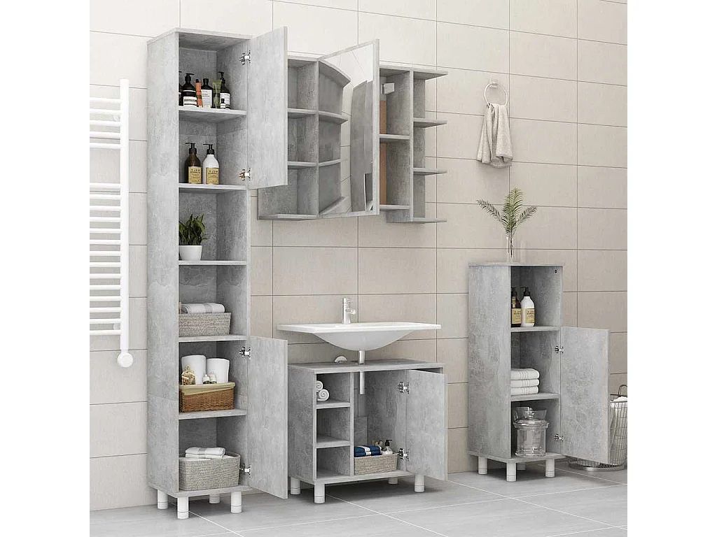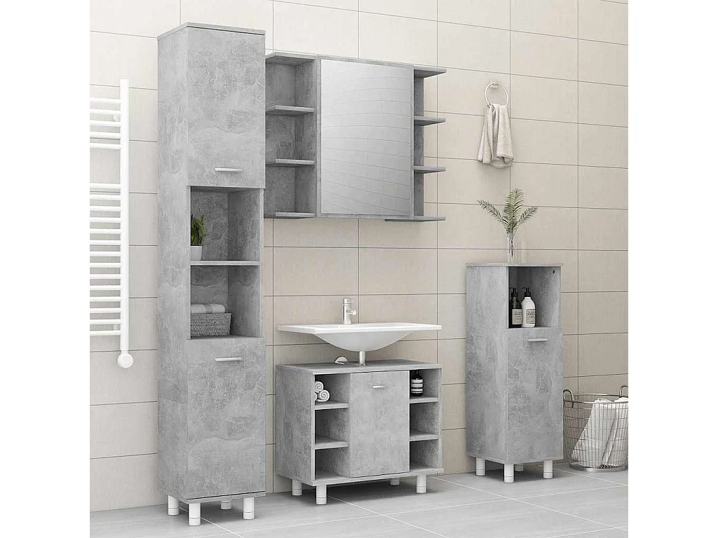 Armário casa banho c/ espelho 80x20,5x64cm cinzento cimento