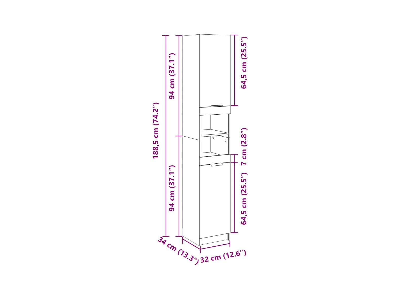 Armário casa de banho 32x34x188,5 cm madeira carvalho sonoma