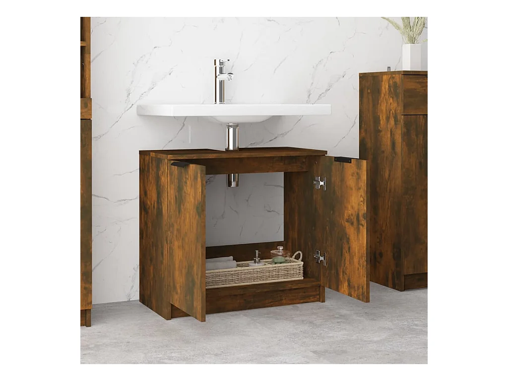 Armário casa de banho 64,5x33,5x59 cm madeira carvalho fumado PT358095