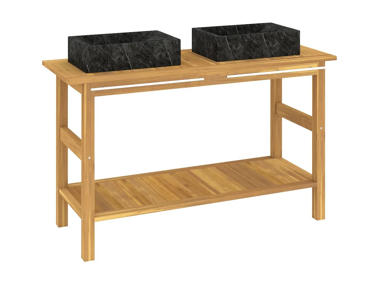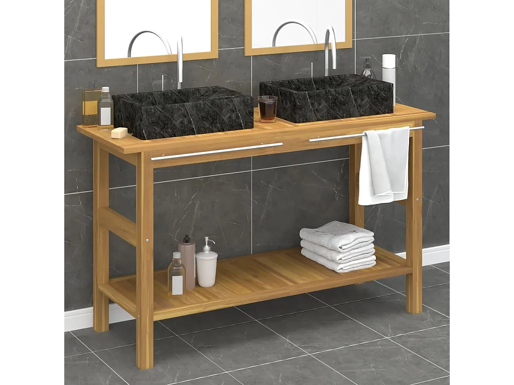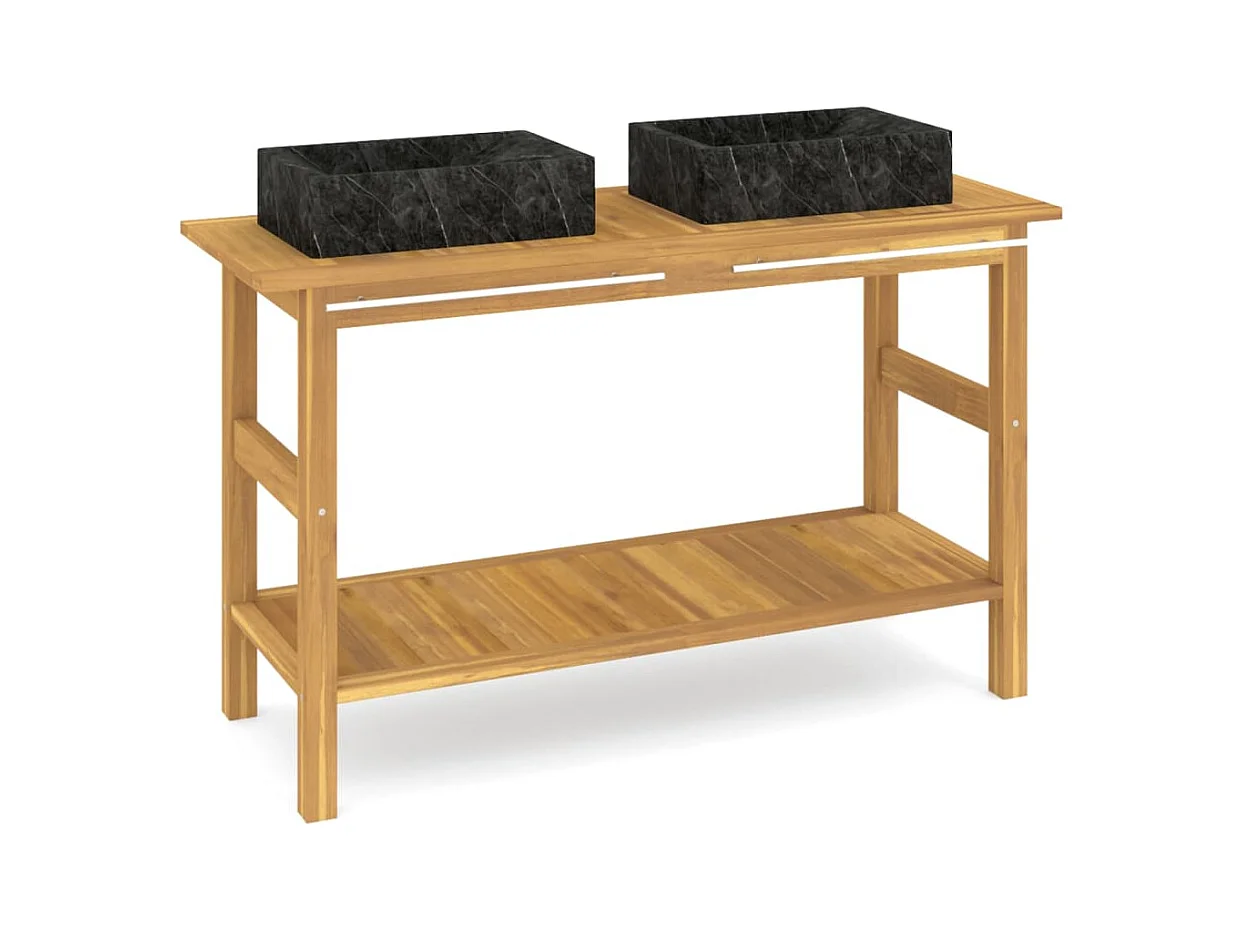 Armário casa de banho teca maciça c/ lavatórios mármore preto