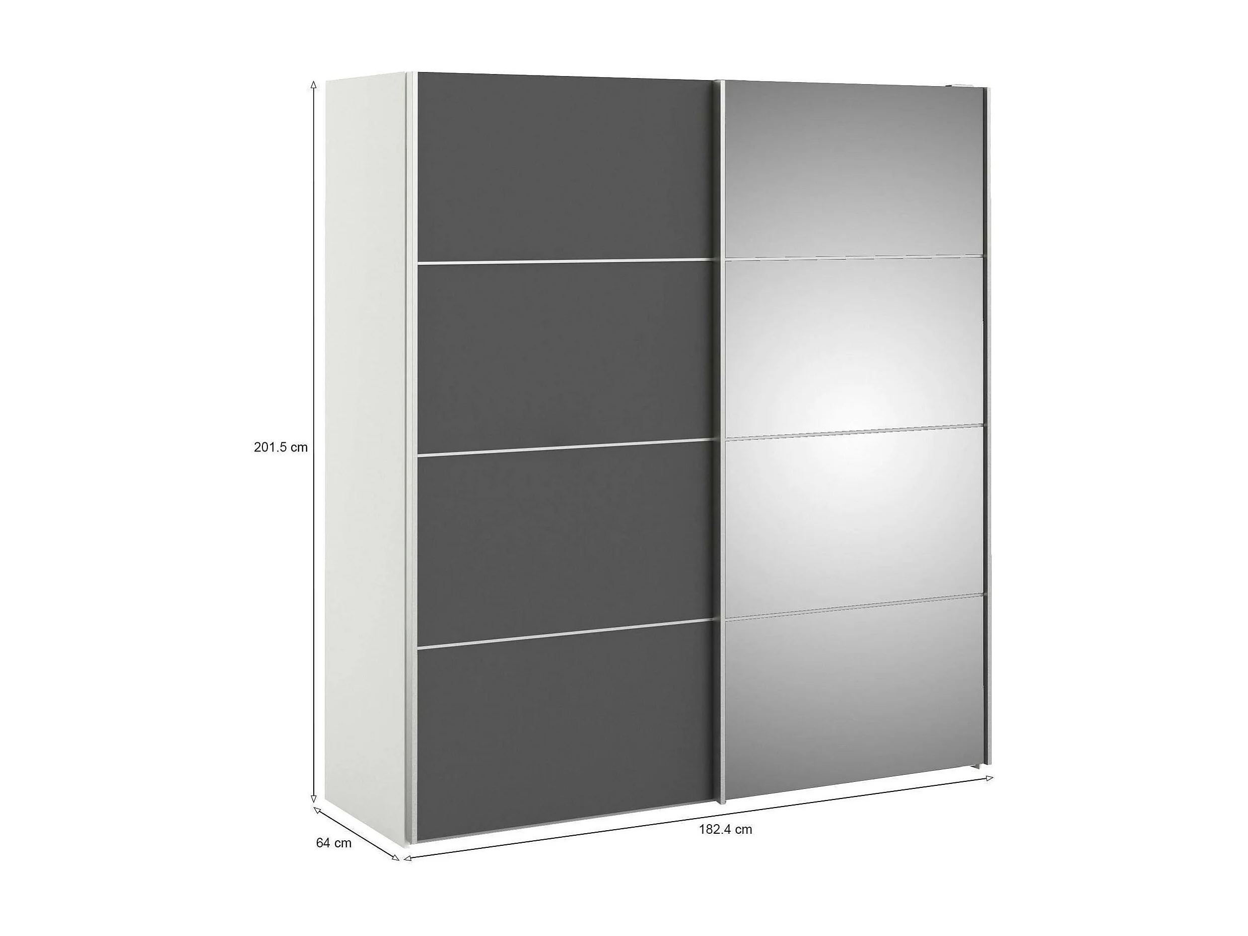 Armário Cerreto de 2 portas, Móveis de quarto, Armário, Armário, 182x64 h202 cm, Cinza e Branco
