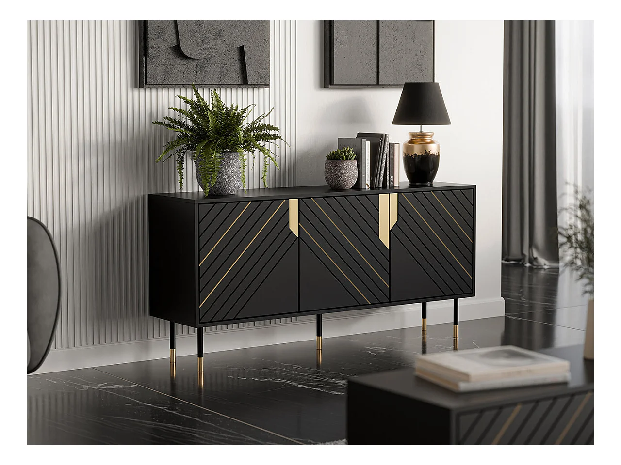 Aparador 3 portas em madeira laminada preta 154x72 cm
