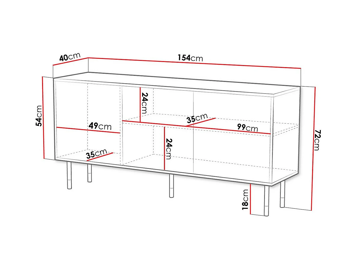 Aparador 2 portas 2 gavetas com pé metálico 120x140 cm