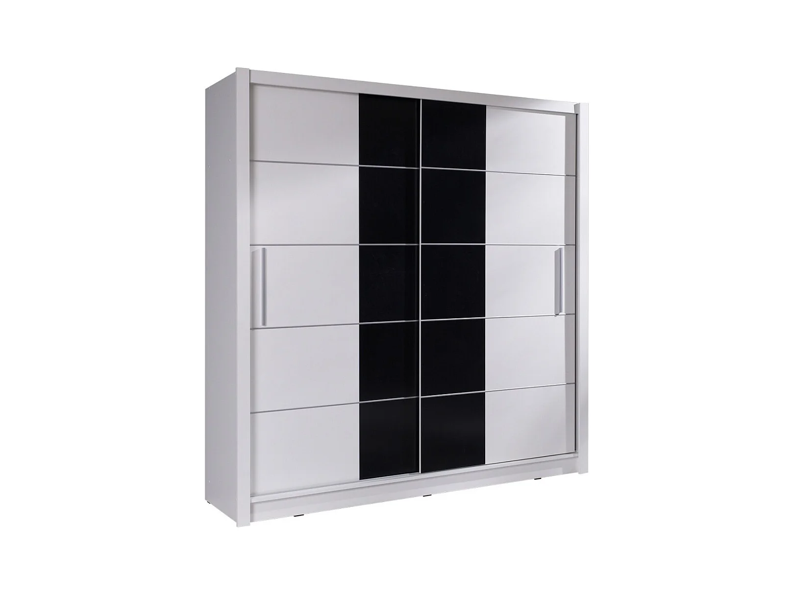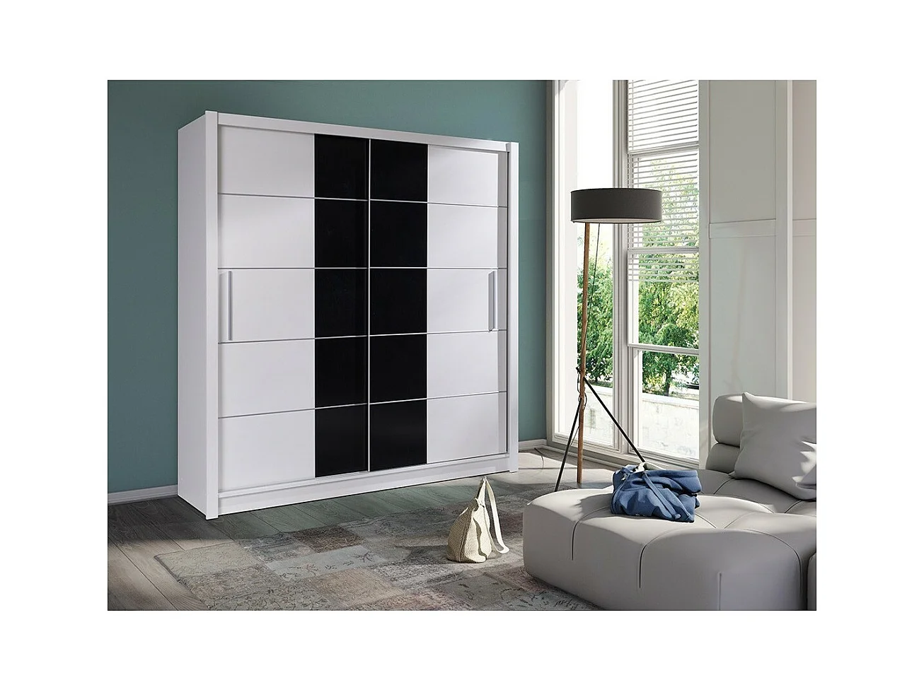 Armário coleção BRESCIA, 2 portas de correr nas cores preto e branco, com guarda-roupa integrado.