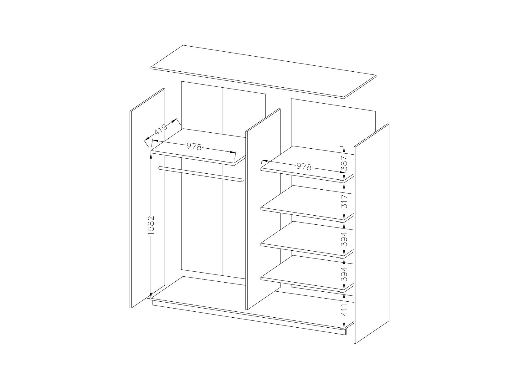 Armário, guarda-roupa GOZU 150 cm com duas portas de correr. Closet completo com cabideiro e prateleiras. Cor branco.