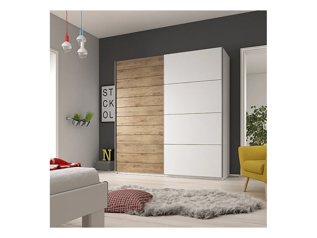 Armário com 2 portas de correr 200cm cor carvalho e branco. Coleção FLOYD