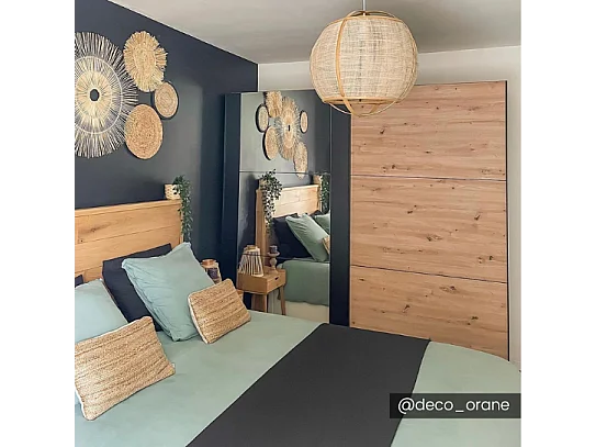 Armário com 2 portas de correr e espelho C.217 cm Carvalho e preto - PHILADELPHIE