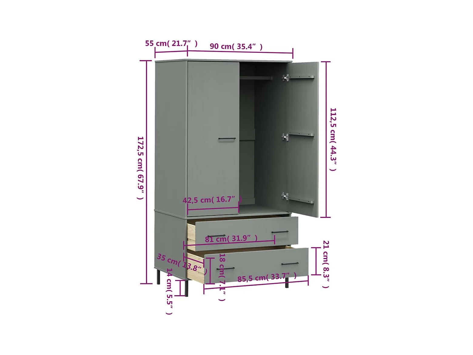 Armário com pés de metal Cinza 90x55x172,5 cm Madeira OSLO
